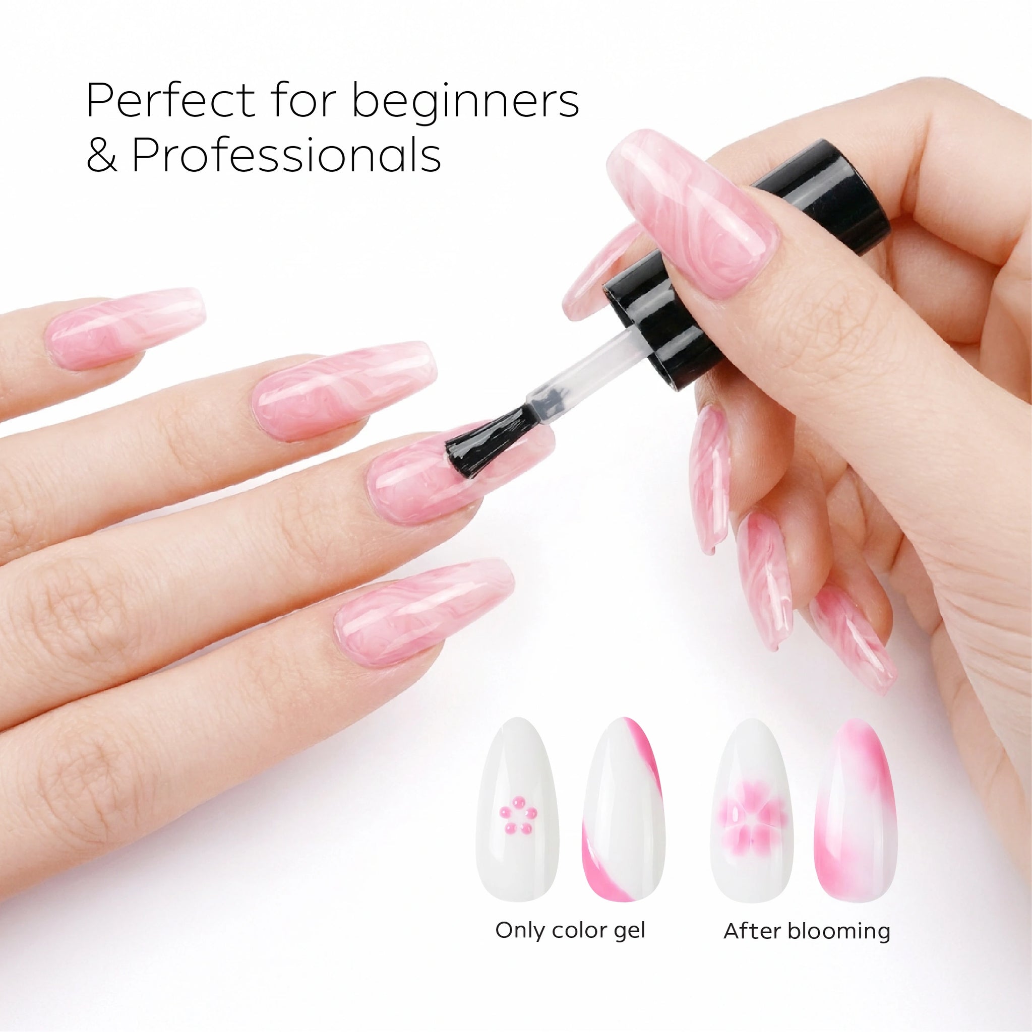 Top off your nail art with our Blooming Top Coat! Achieve gorgeous, soft blooming effects that add a unique touch to every manicure.