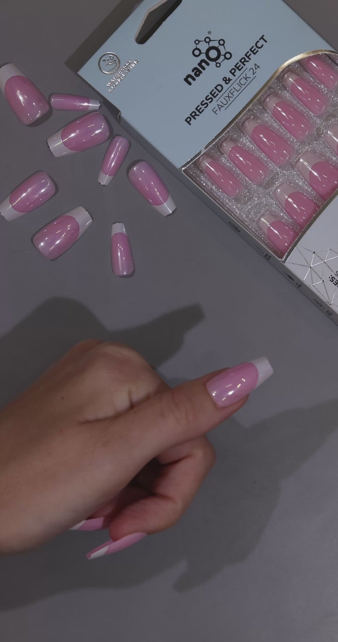 Nano® Blush Chrome French Pressed on Nails - 24pcs with Glue | Instant Gel-Like Shine, Pink Chrome French Fake Nails Set