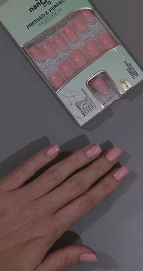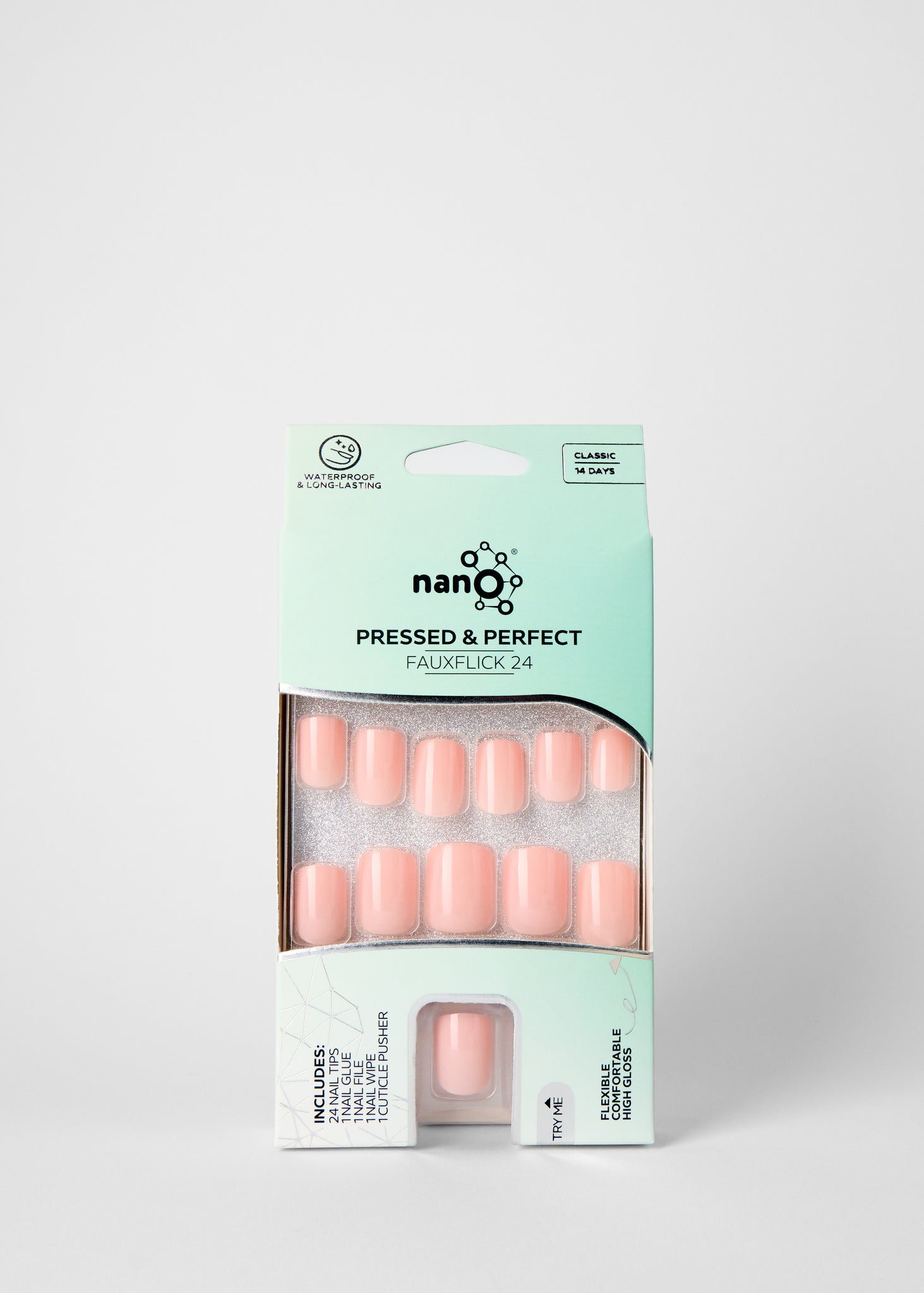 Nano® Blush Veil Pressed on Nails - 24pcs with Glue | Instant Gel-Like Shine, Soft Peachy-Pink Fake Nails Set