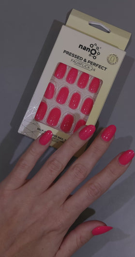 Nano® Candy Pink Pressed on Nails - 24pcs Self-Adhesive | Vibrant Glossy Pink Finish, Bright Fake Nails Set
