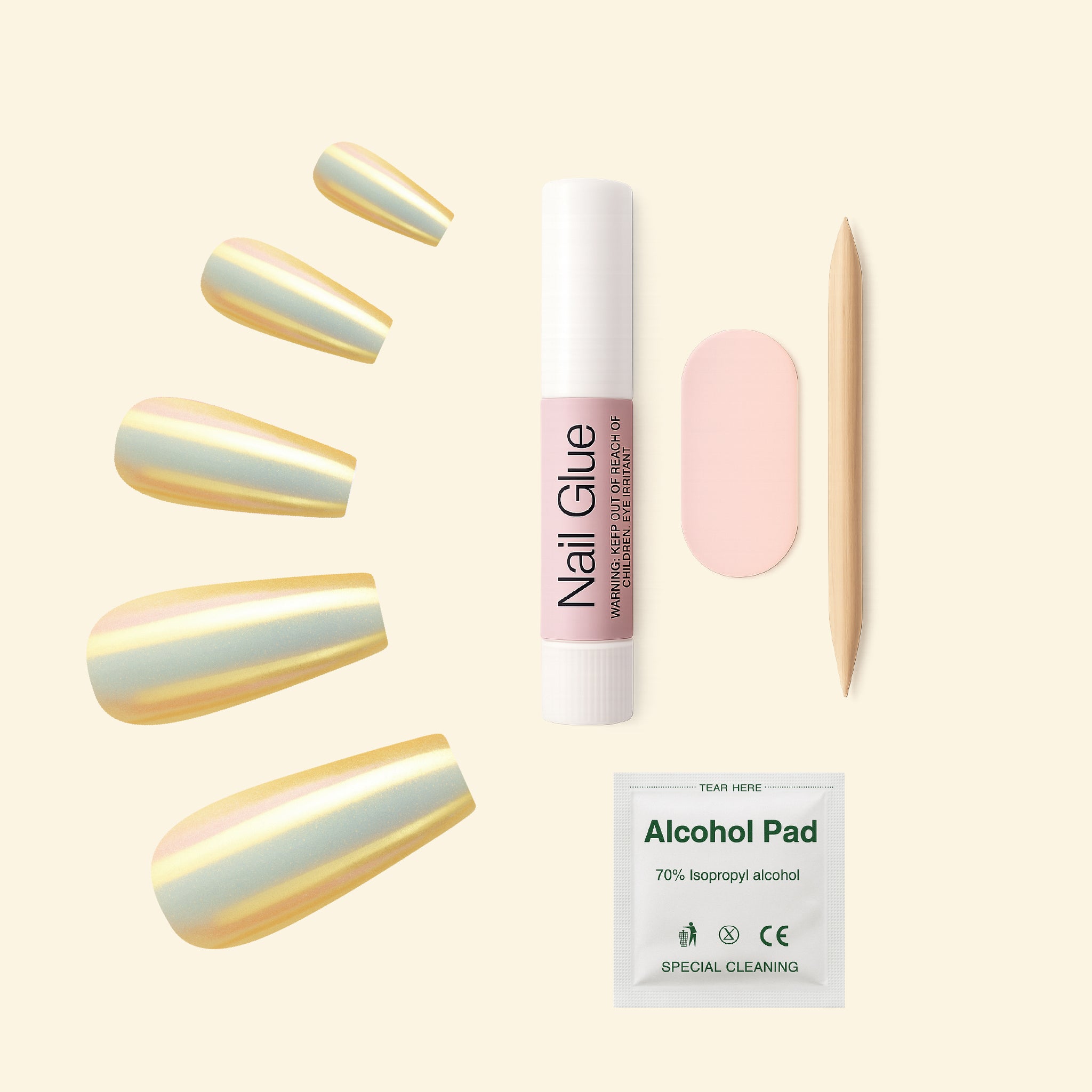 • Comfort-Fit Design: This chrome gold fake nails are crafted to fit naturally and comfortably for smooth, effortless wear.