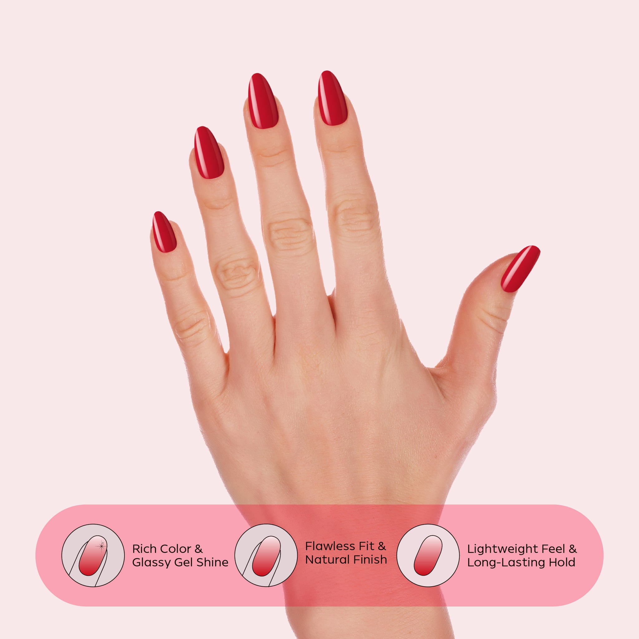 Nano® Crimson Charm Pressed on Nails - 24pcs with Glue | Instant Gel-Like Shine, Classic Red Glossy Fake Nails Set
