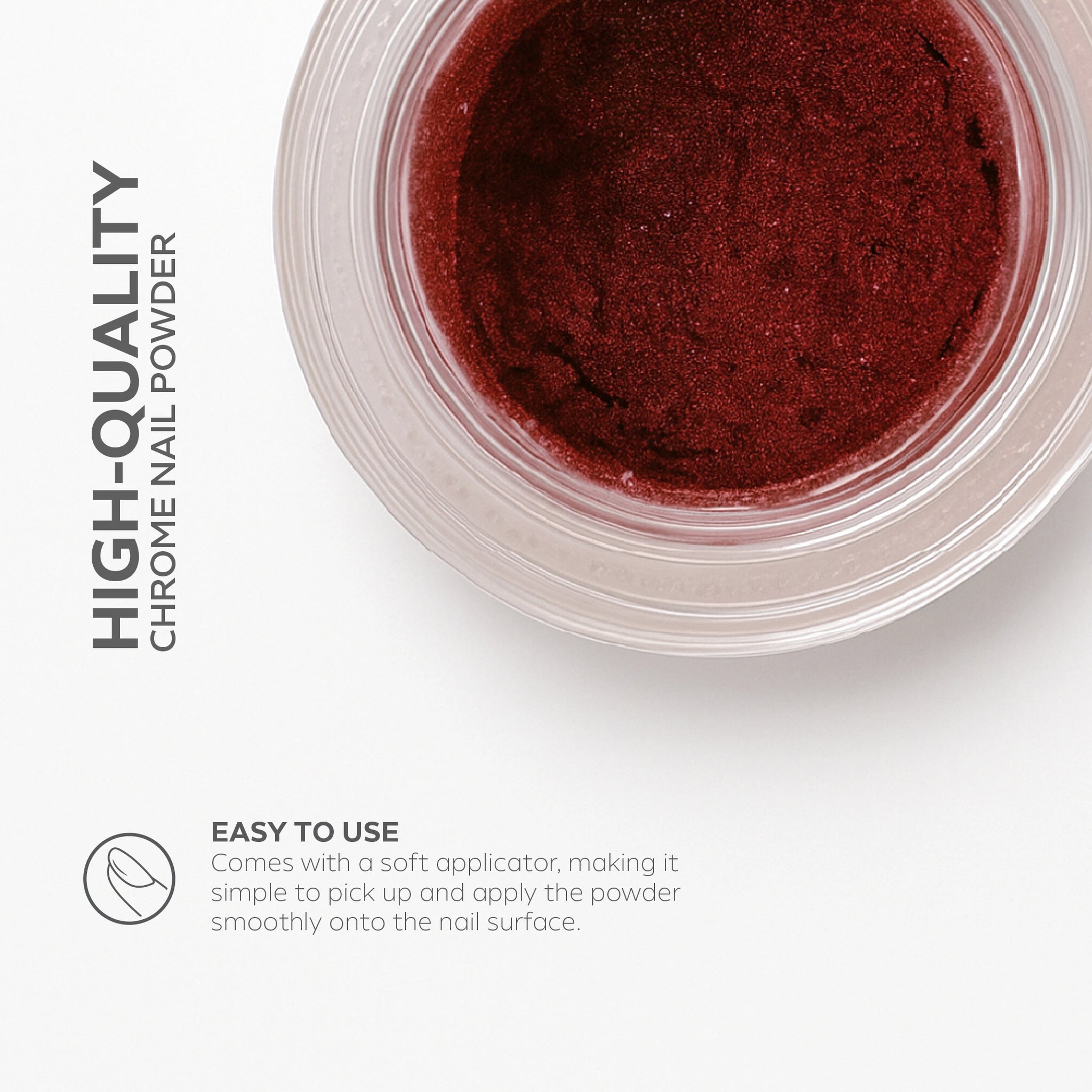 Rich Crimson Mirror Finish: Crimson Wine Chrome Powder delivers a bold, ruby-wine metallic sheen that’s intense, luxurious, and perfect for statement chrome nail looks.
