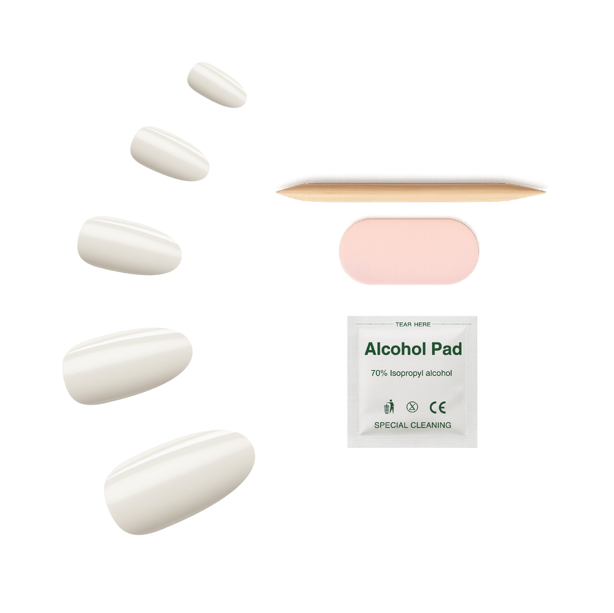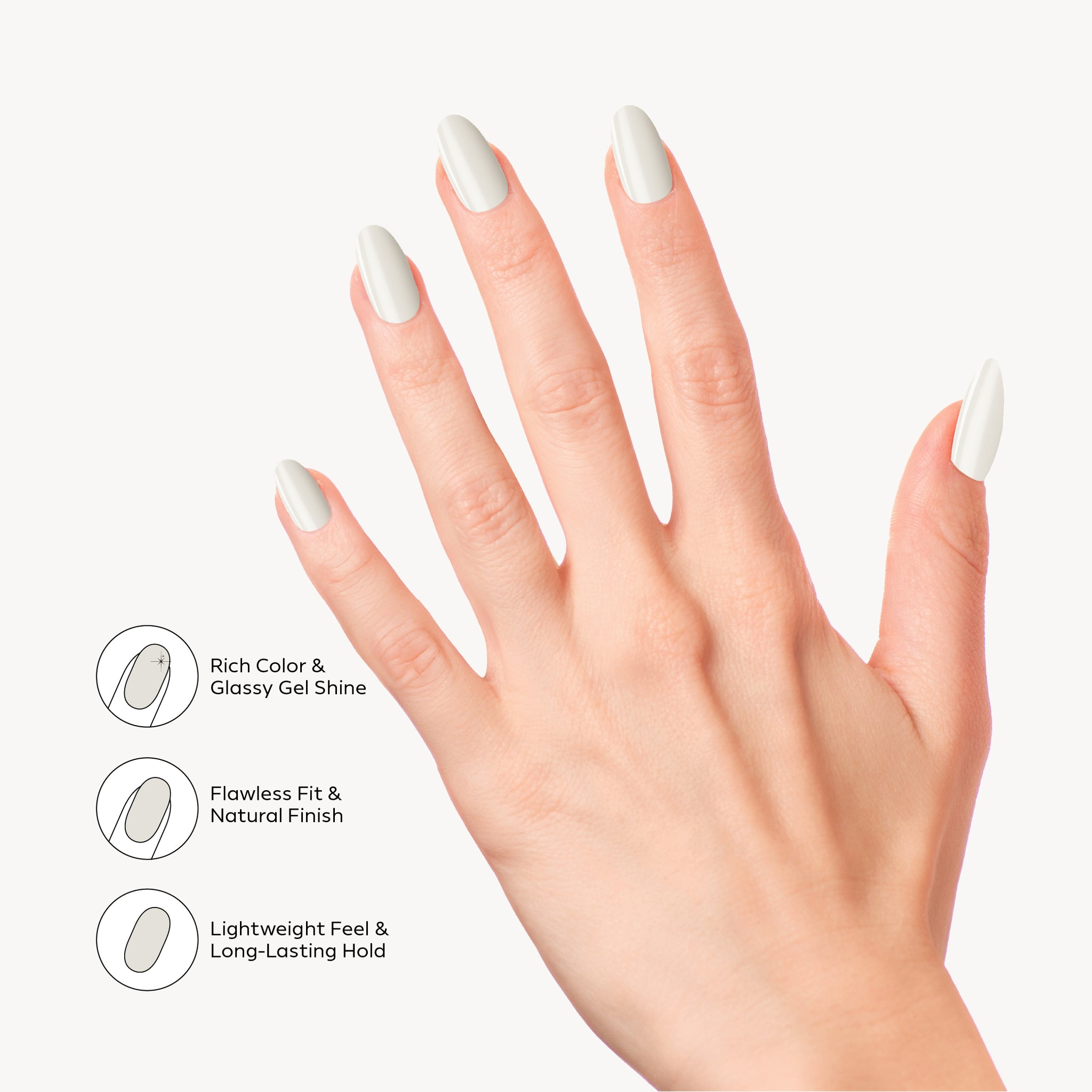 Nano® Crystal White Pressed on Nails - 24pcs Self-Adhesive | Instant Gel-Like Shine, Glossy White Fake Nails Set