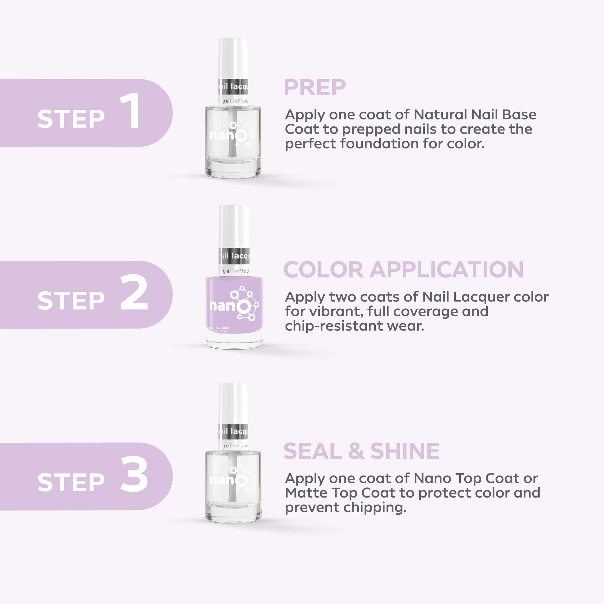 - Apply a layer of Nano® Normal Base Coat to protect your natural nails and ensure better adhesion.