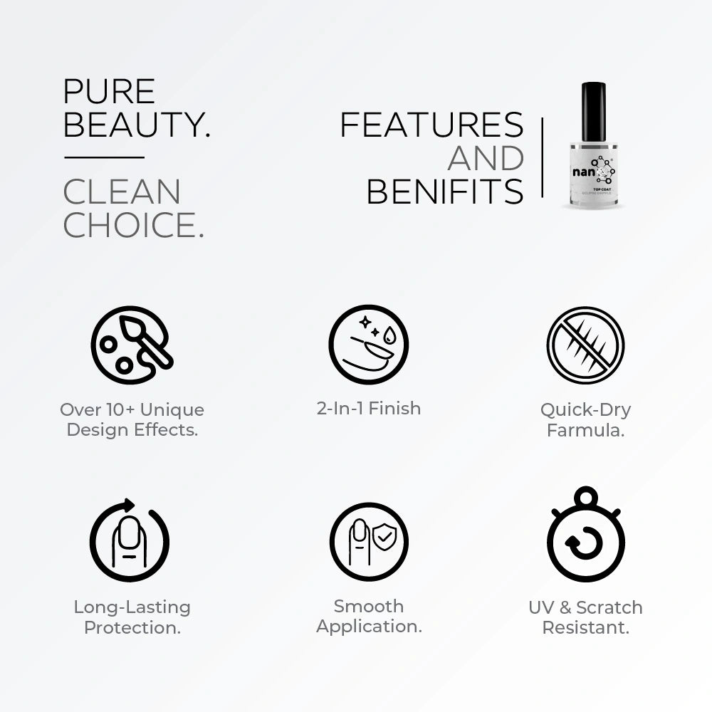 - Nano® Top coat requires no wipe off, so your nails are all set!