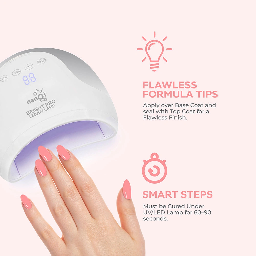 - Apply a second layer of Nano® gel nail polish and cure it under the Nano UV/LED lamp for an additional 60 seconds.