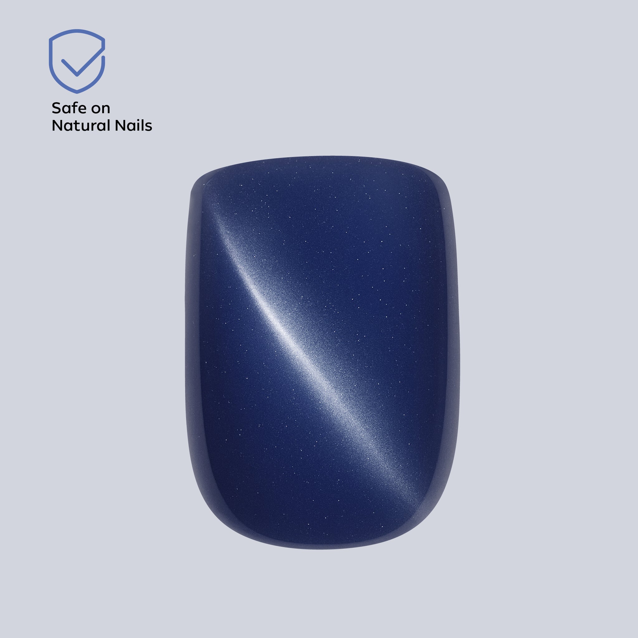 Nano® Galactic Meow CatEye Pressed on Nails - 24pcs with Glue | Instant Gel-Like Shine, Deep Blue Chrome Fake Nails Set