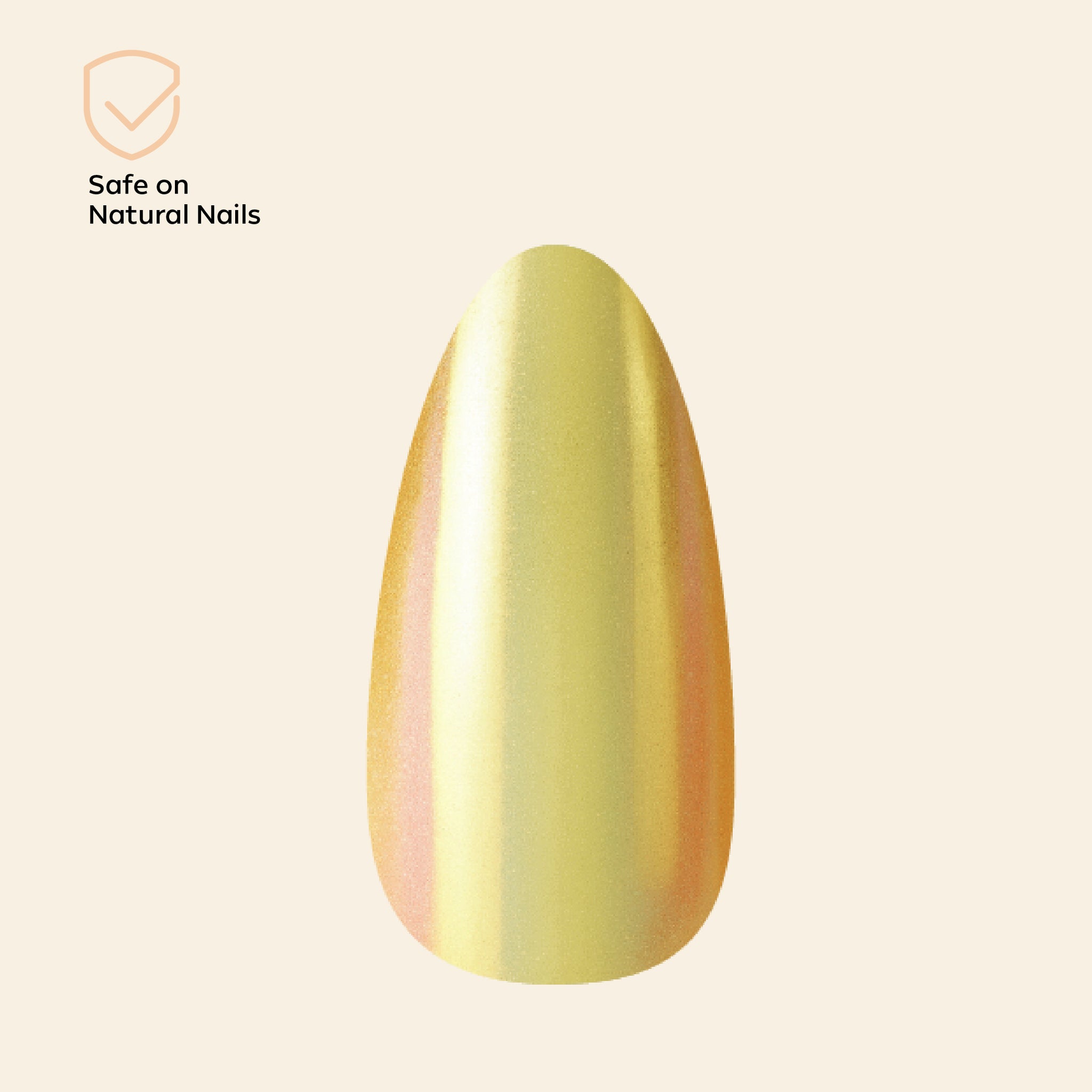 Nano® Golden Mirage Pressed on Nails - 24pcs with Glue | Instant Gel-Like Shine, Iridescent Gold Fake Nails Set
