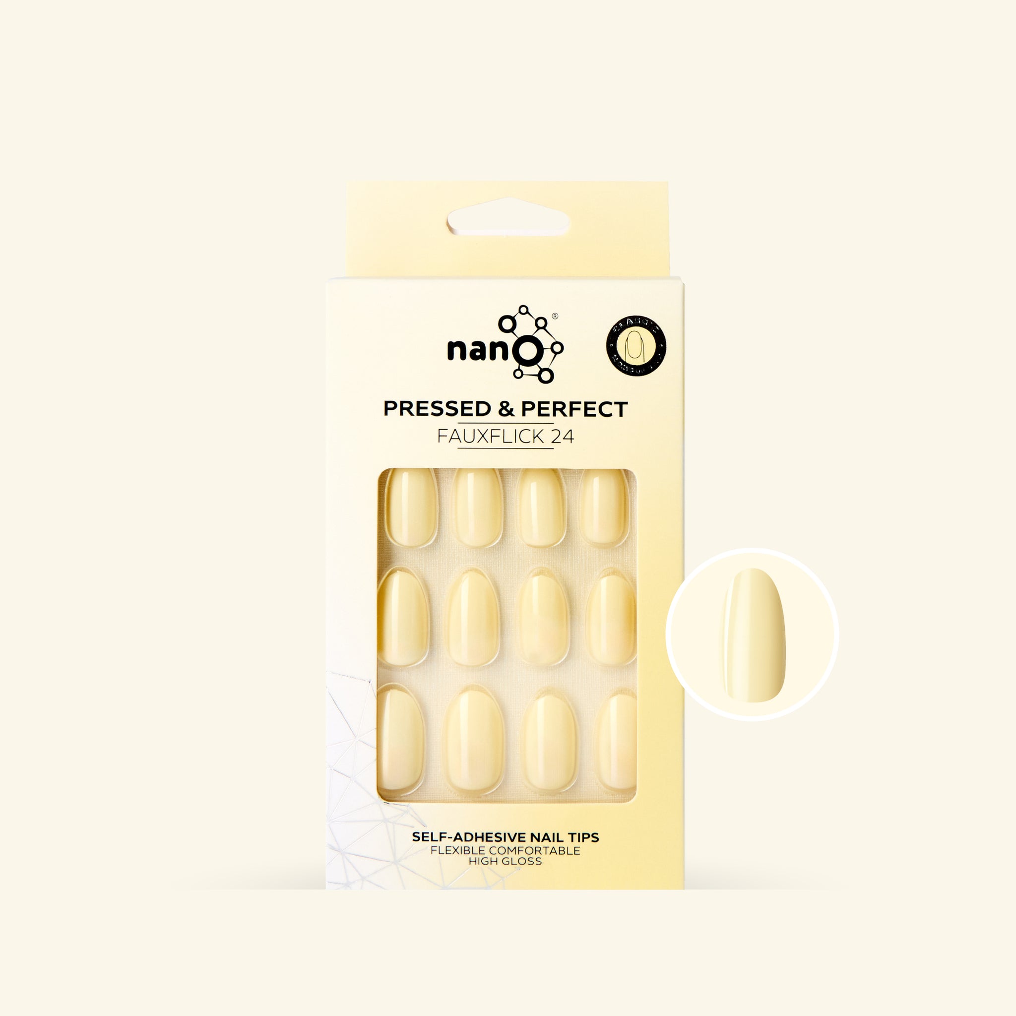 Nano® Ivory Glow Pressed on Nails - 24pcs Self-Adhesive | Soft Cream Finish, Glossy Nude Fake Nails Set