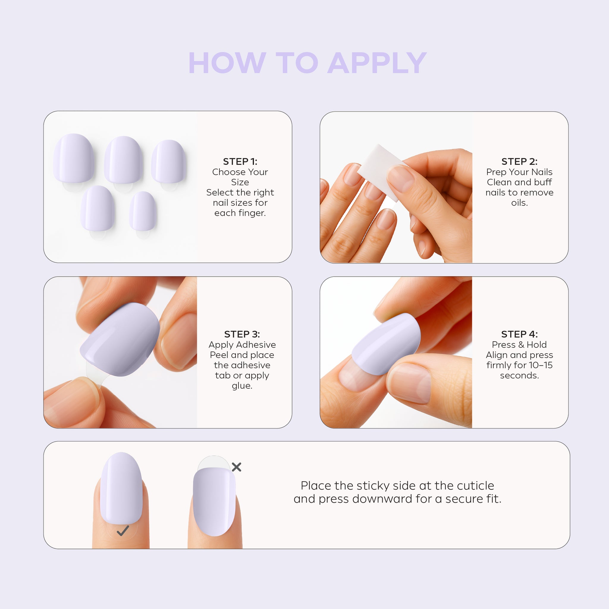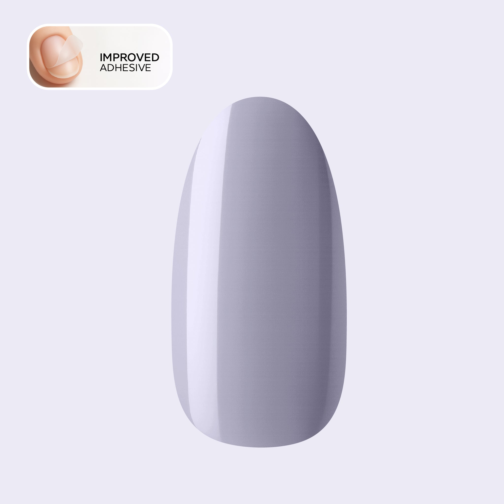 Nano® Lilac Mist Pressed on Nails - 24pcs Self-Adhesive | Soft Grey-Lilac Finish, Glossy Neutral Fake Nails Set