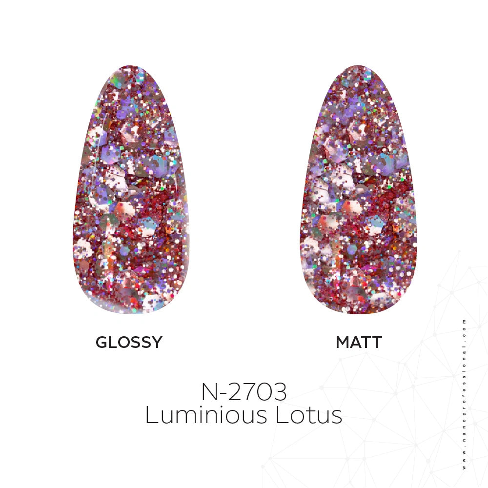 - Luminous Lotus Gel Polish is an iridescent glitter nail gel in UAE that shines with multi-tonal glimmers of pink, purple, and sparkle—your nails, but next-level magical.