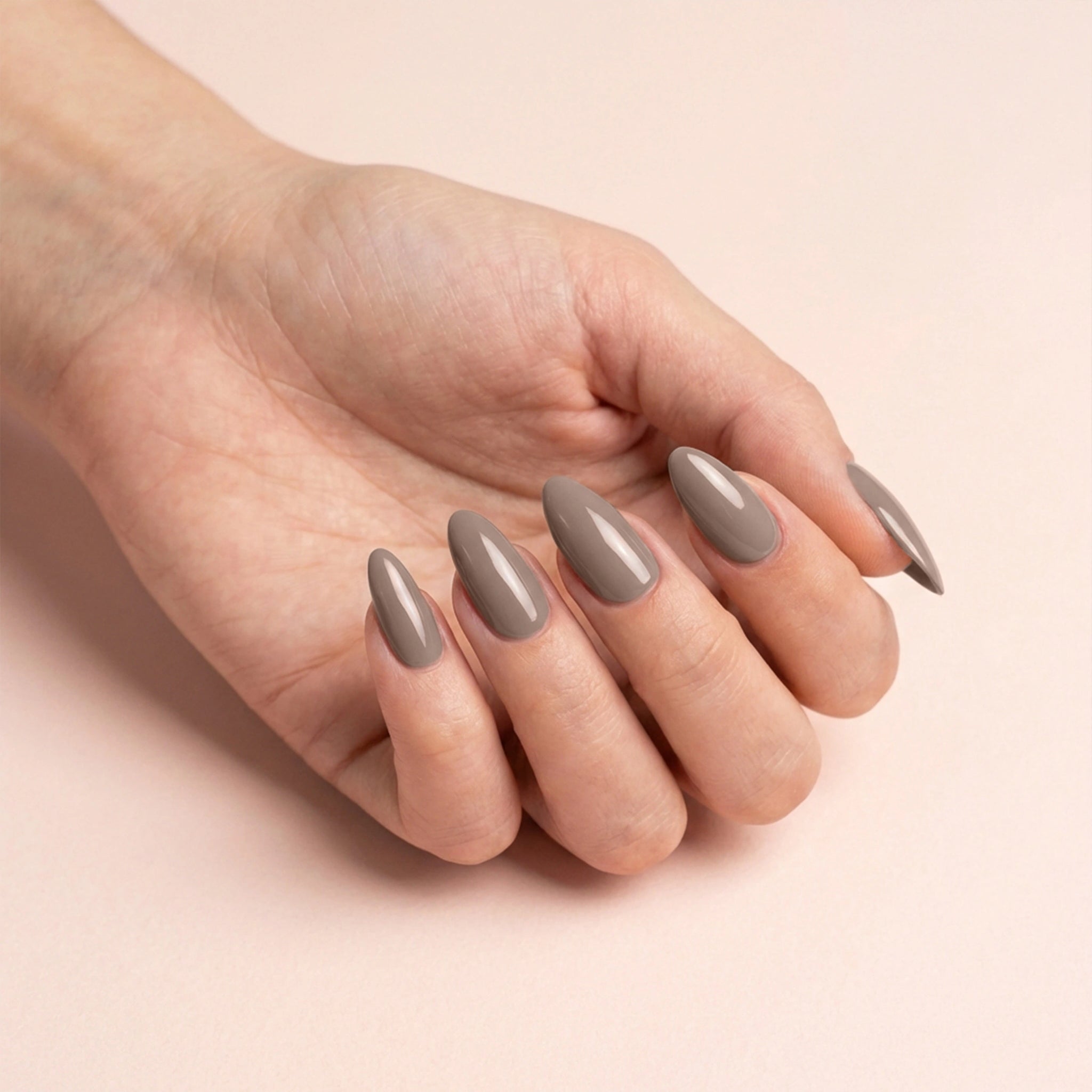 Nano® Mauve Muse Pressed on Nails - 24pcs Self-Adhesive | Soft Brown Mauve Finish, Glossy Natural Fake Nails Set