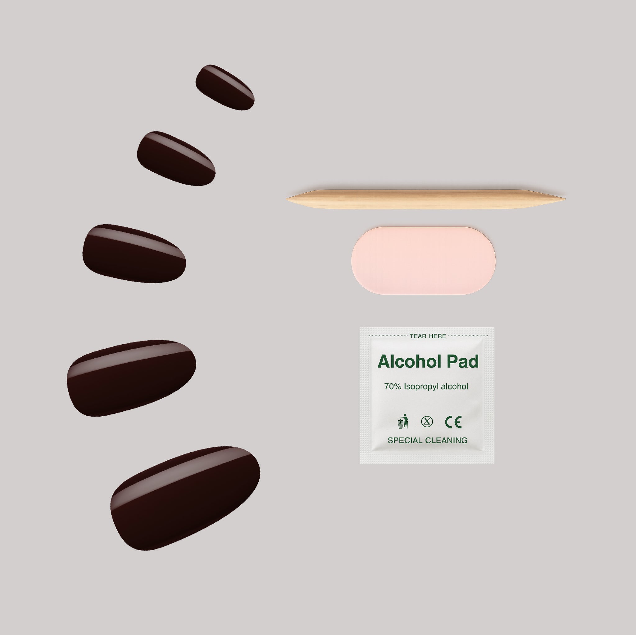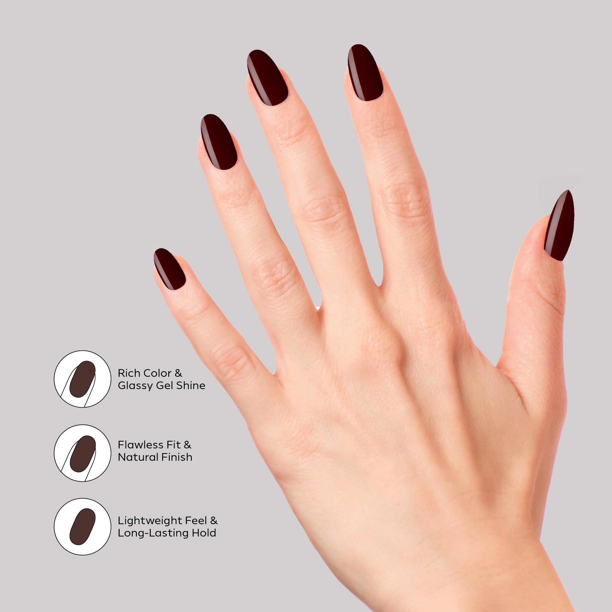 Nano® Merlot Magic Pressed on Nails - 24pcs Self-Adhesive | Deep Wine Red Finish, Glossy Burgundy Fake Nails Set