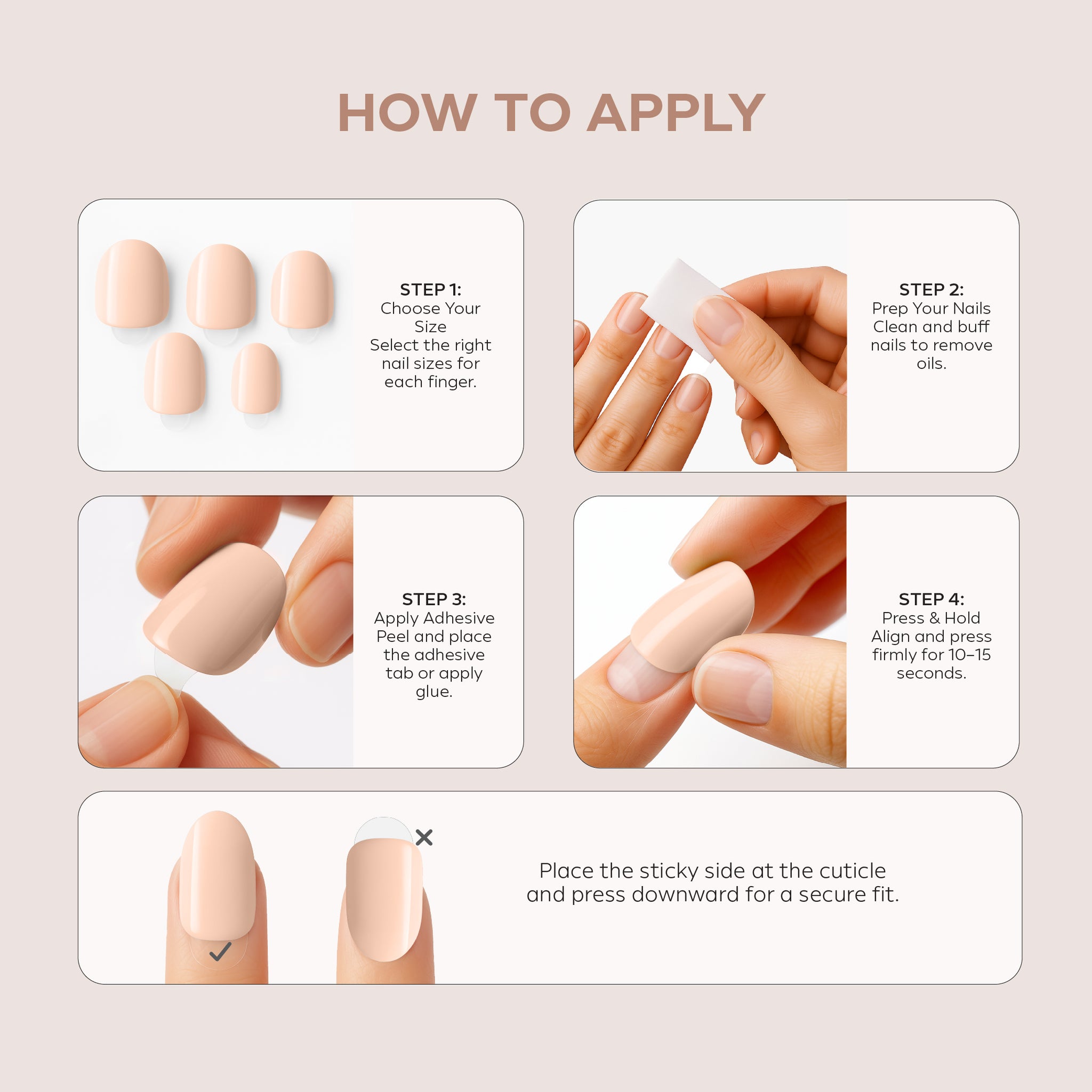 • Quick & Easy Application: Self-adhesive design — just peel, press, and get salon-ready nails instantly.