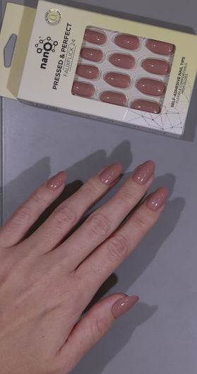 Nano® Mocha Mousse Pressed on Nails - 24pcs Self-Adhesive | Warm Brown Nude Finish, Glossy Neutral Fake Nails Set