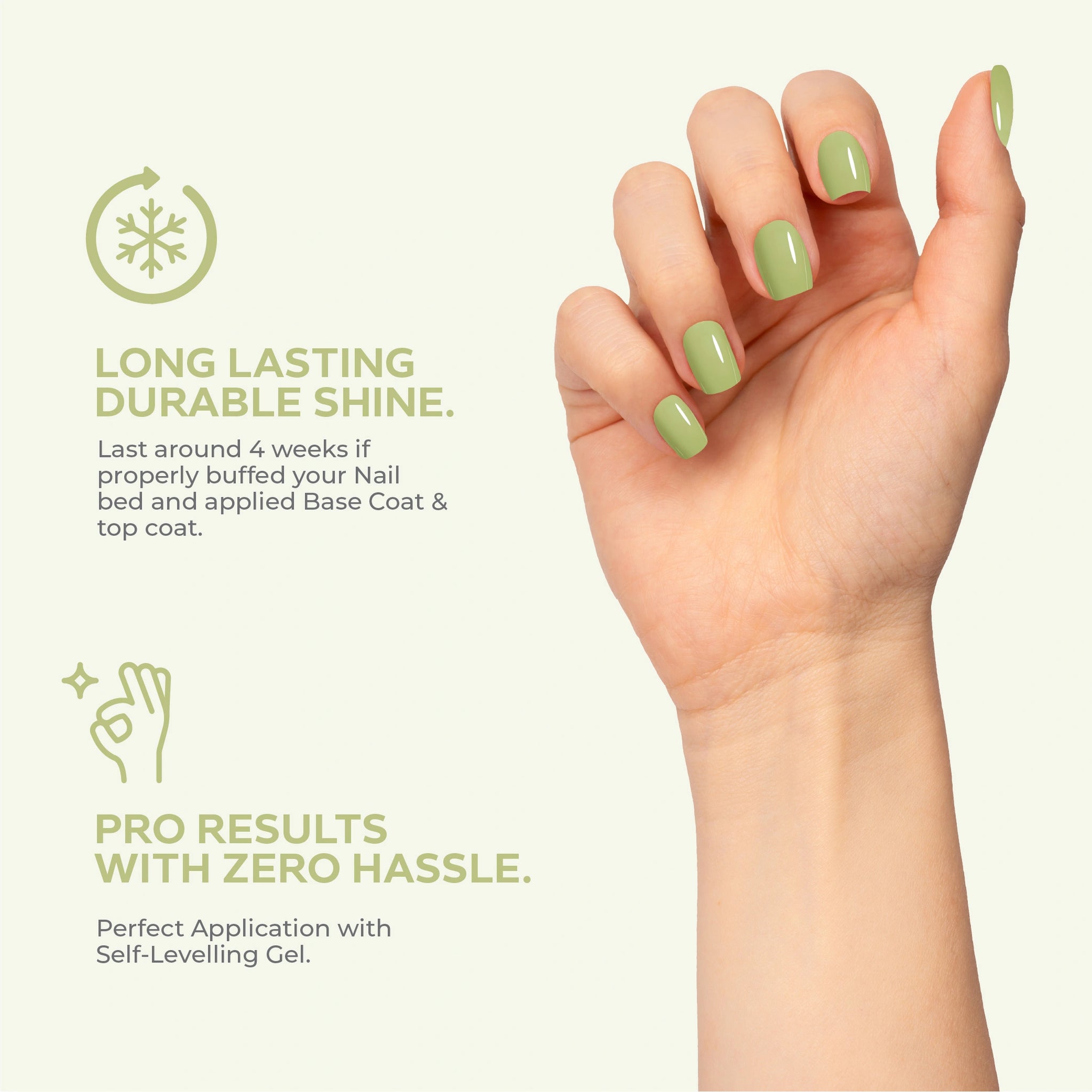 This premium moss-toned gel nail polish glides on smoothly and cures in just 60 seconds under UV/LED light. As a long-lasting nail polish in UAE, it delivers flawless, chip-resistant shine that stays vibrant for up to 4 weeks.