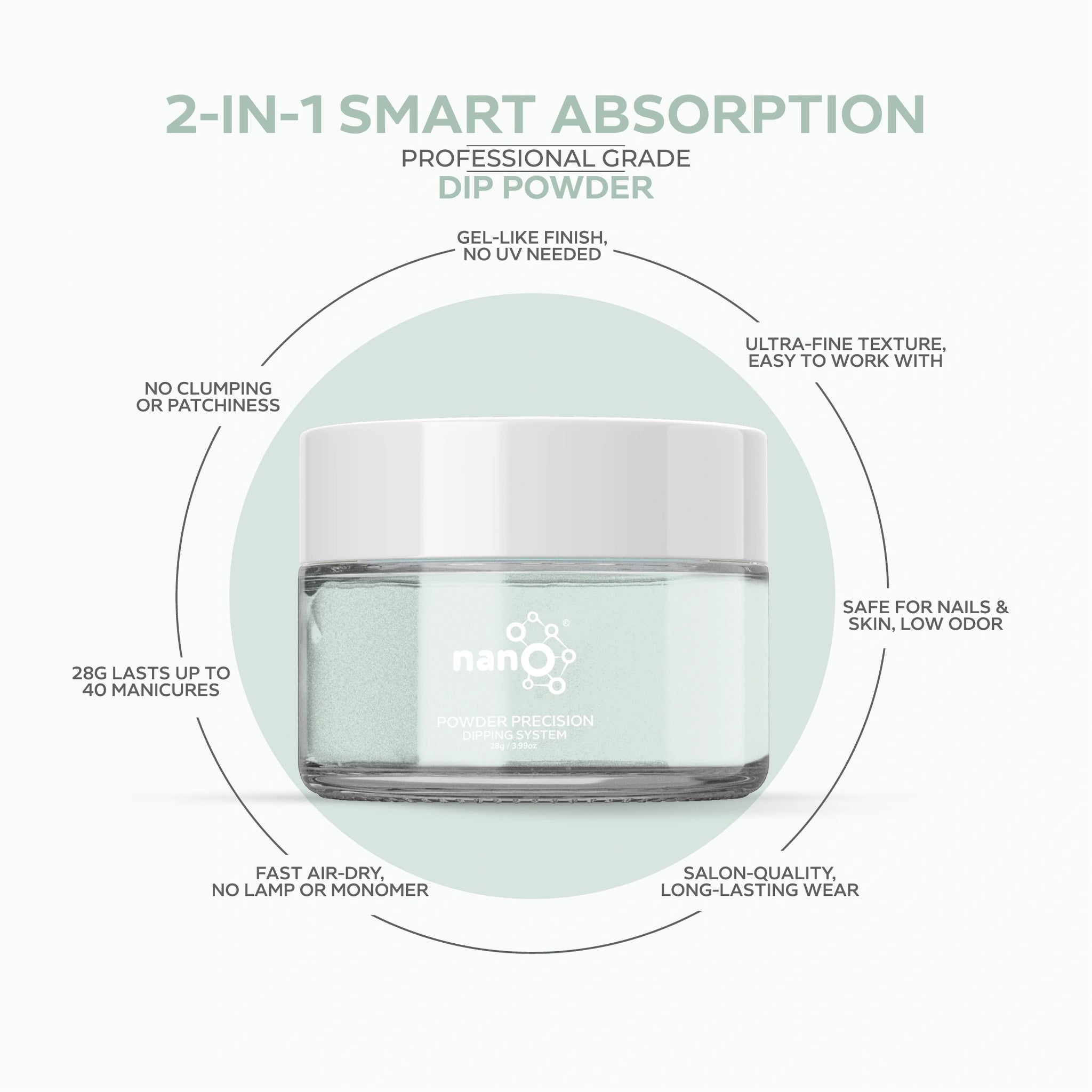 - Add the Powder: Immediately dip your nail into the Nano® Dip Powder or sprinkle the powder evenly over the nail. Gently tap off any excess powder.