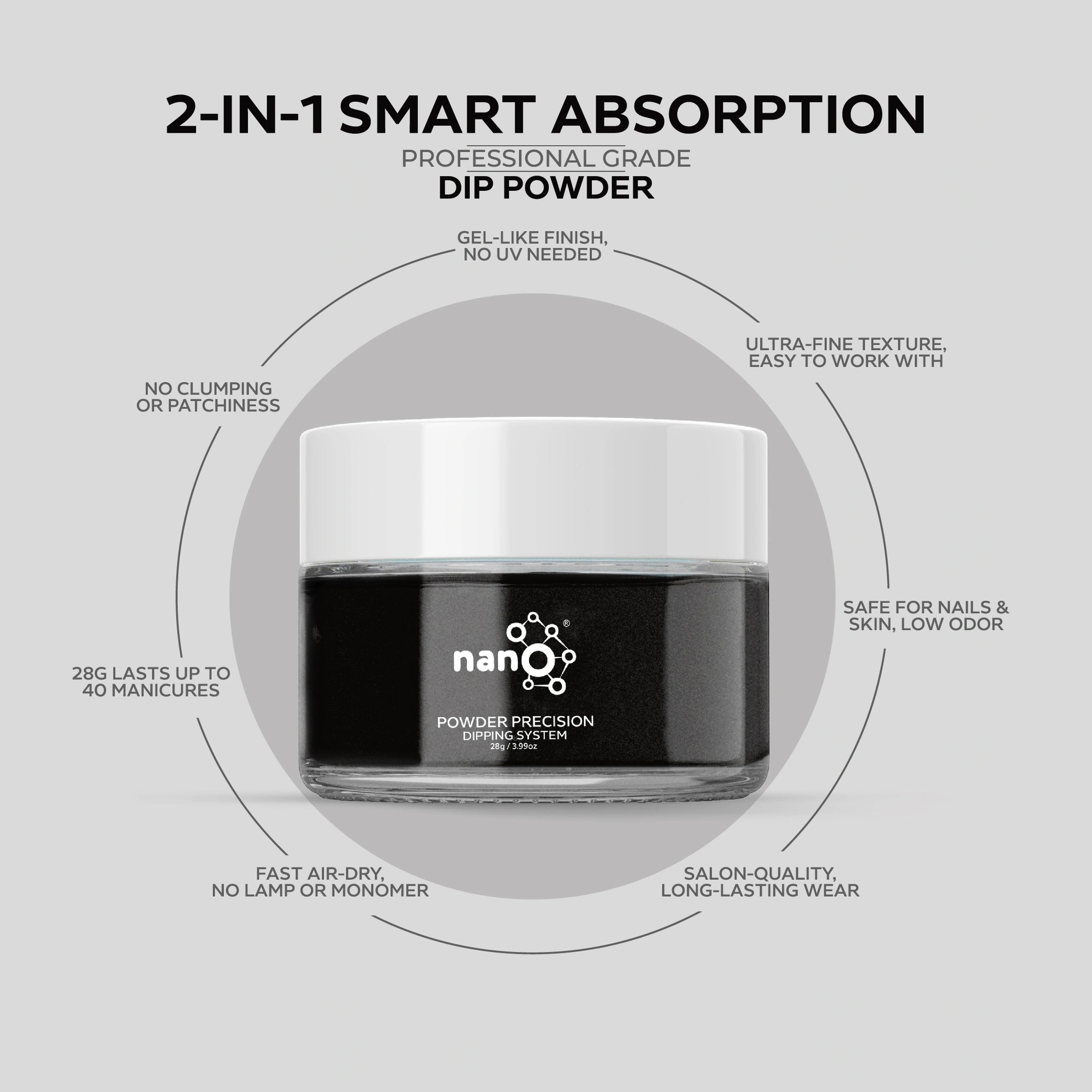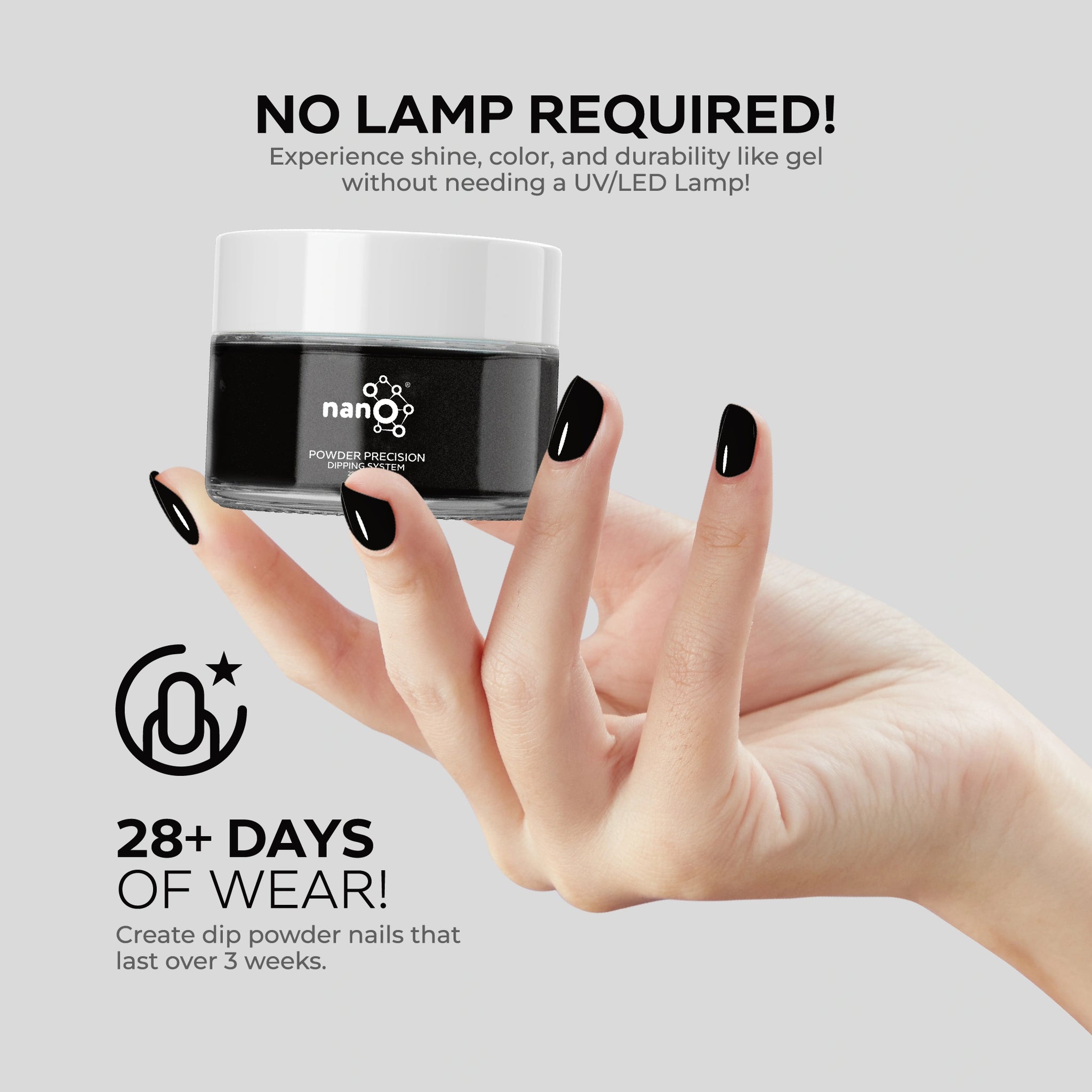 - Add the Powder: Immediately dip your nail into the Nano® Dip Powder or sprinkle the powder evenly over the nail. Gently tap off any excess powder.