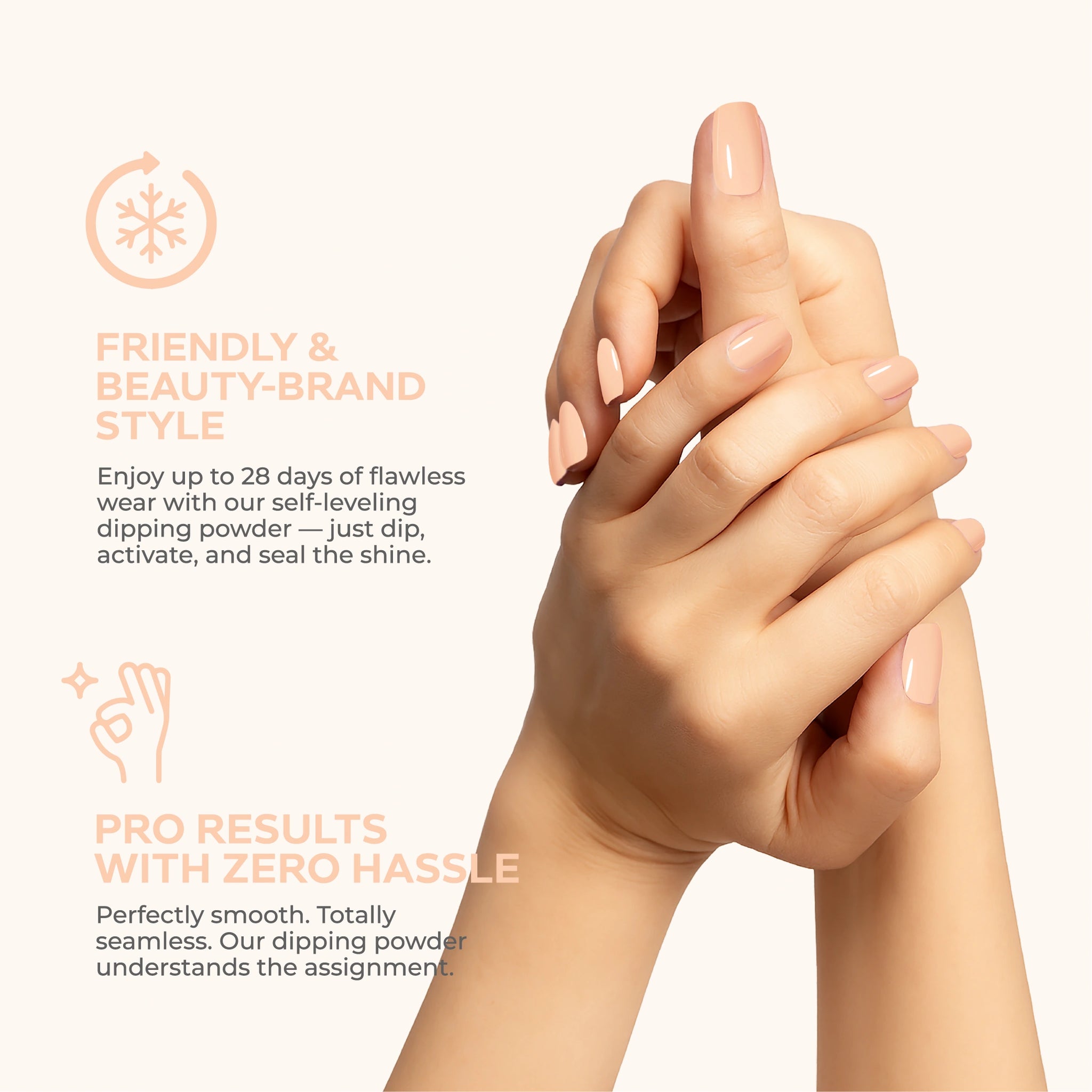 Natural Radiance: Cream Peach Nail Dipping Powder features a warm, creamy peach pigment that adds a fresh, inviting glow to your nails for a soft and polished look.