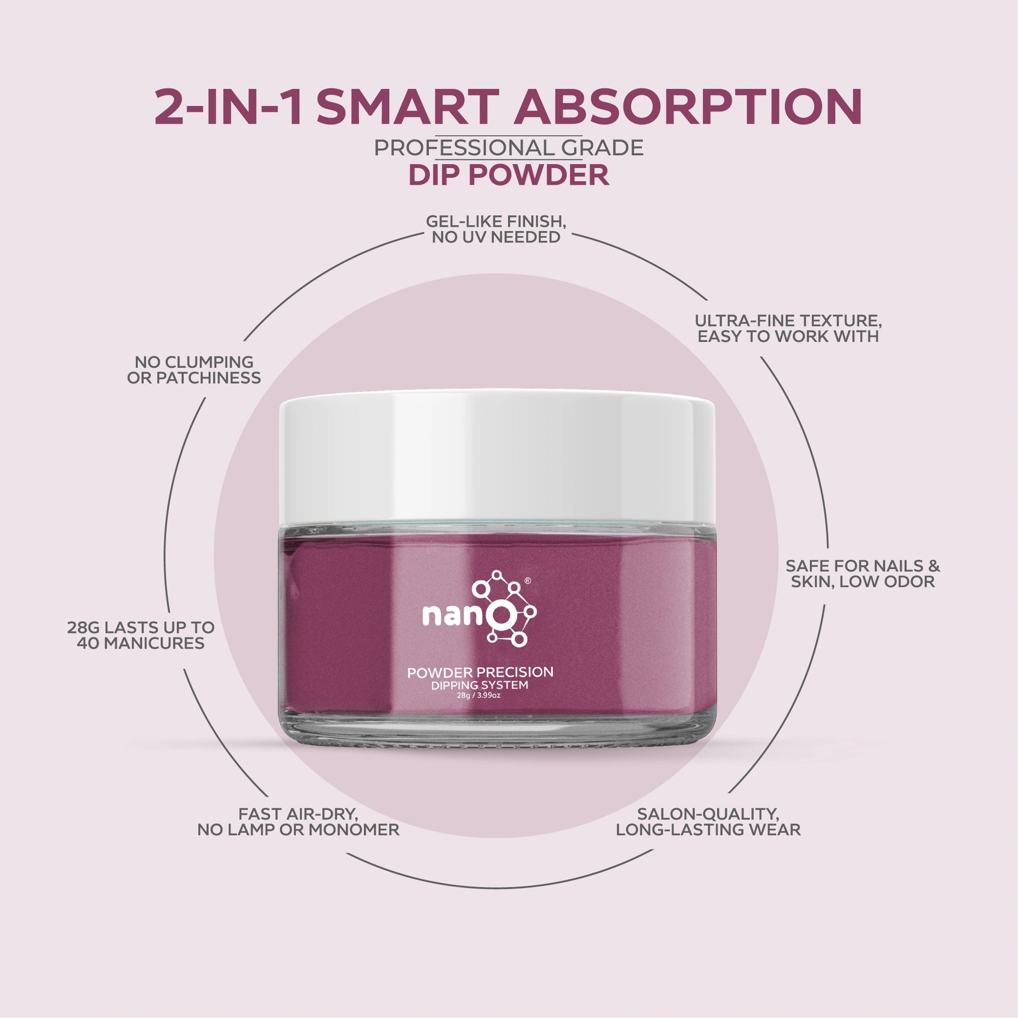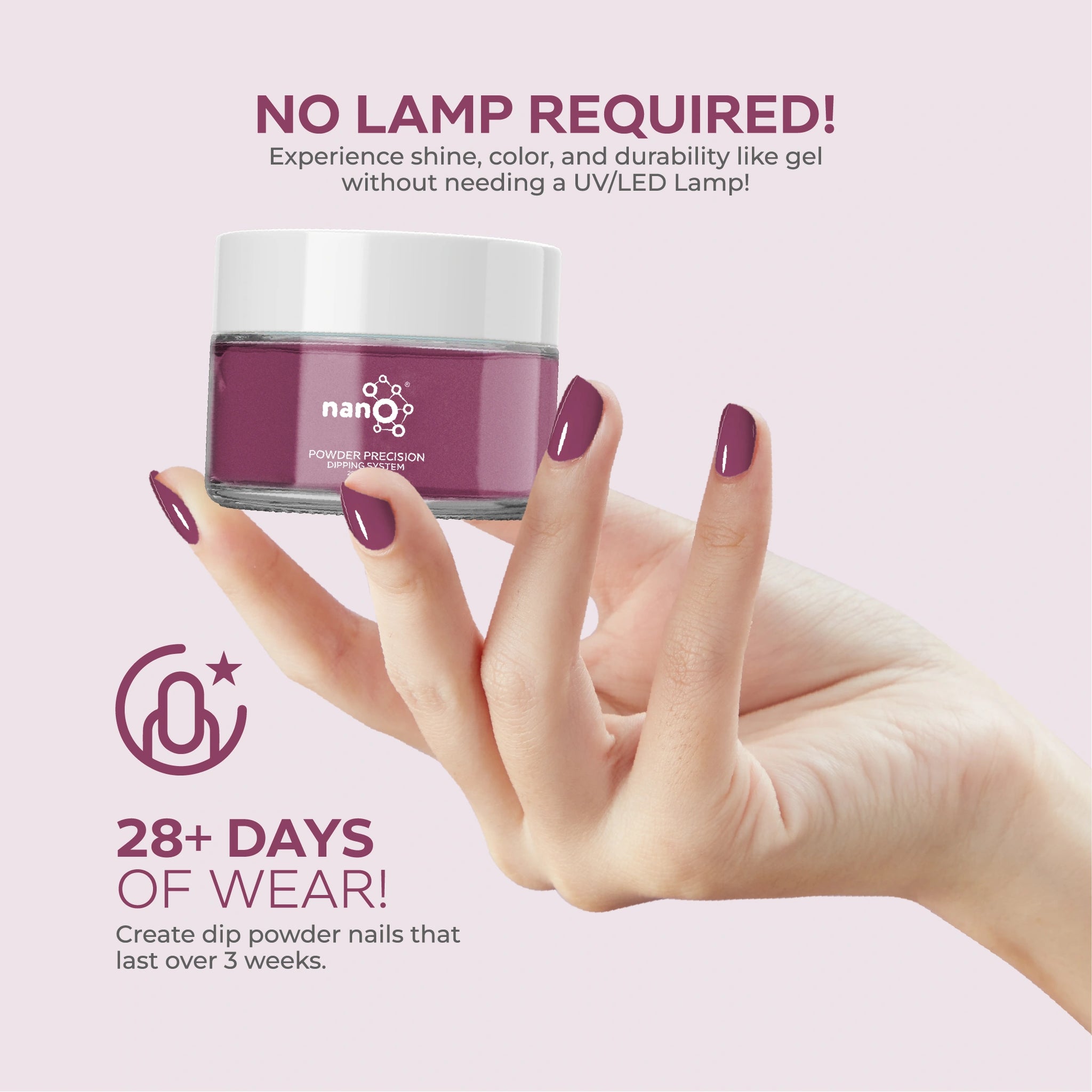 - Add the Powder: Immediately dip your nail into the Nano® Dip Powder or sprinkle the powder evenly over the nail. Gently tap off any excess powder.