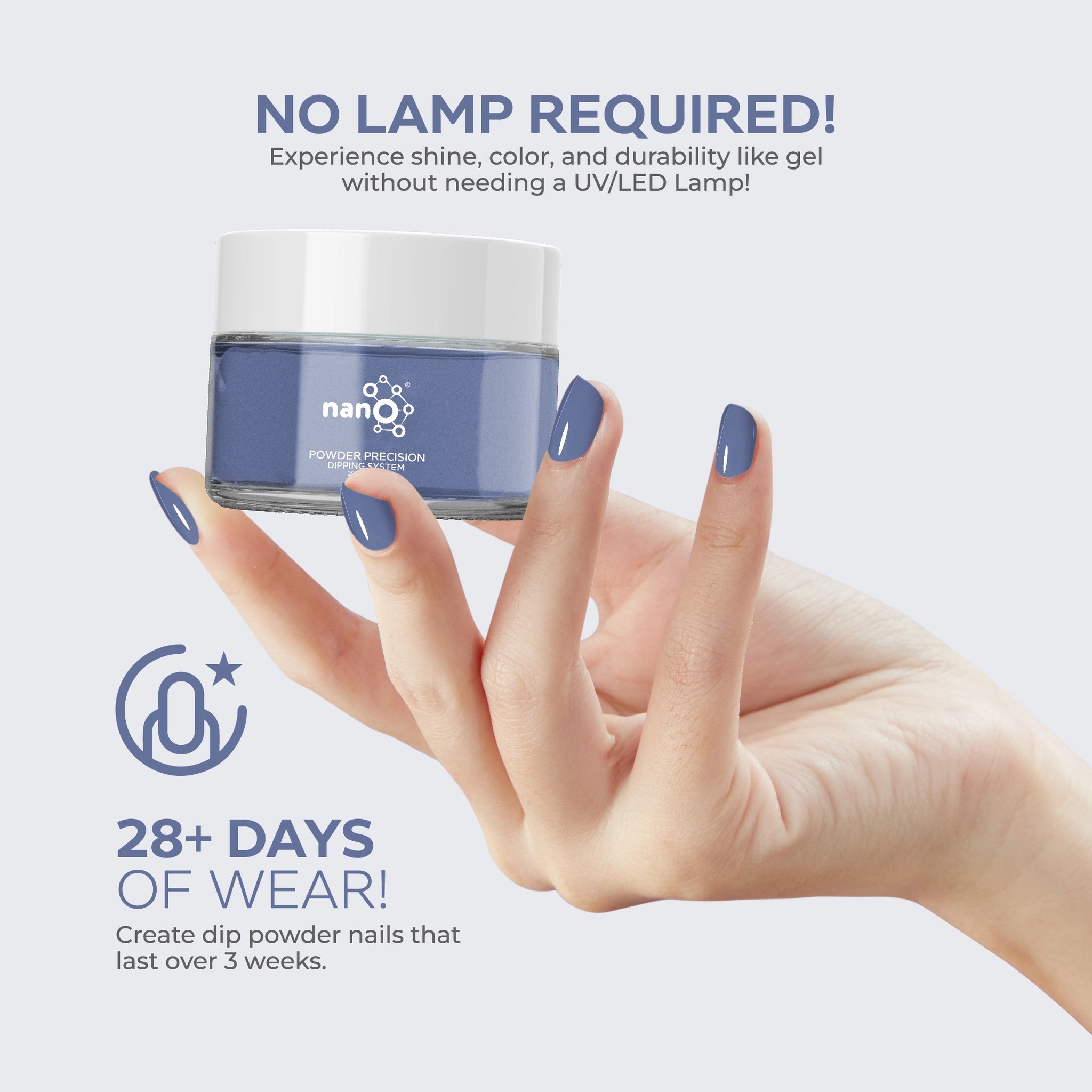 - Add the Powder: Immediately dip your nail into the Nano® Dip Powder or sprinkle the powder evenly over the nail. Gently tap off any excess powder.