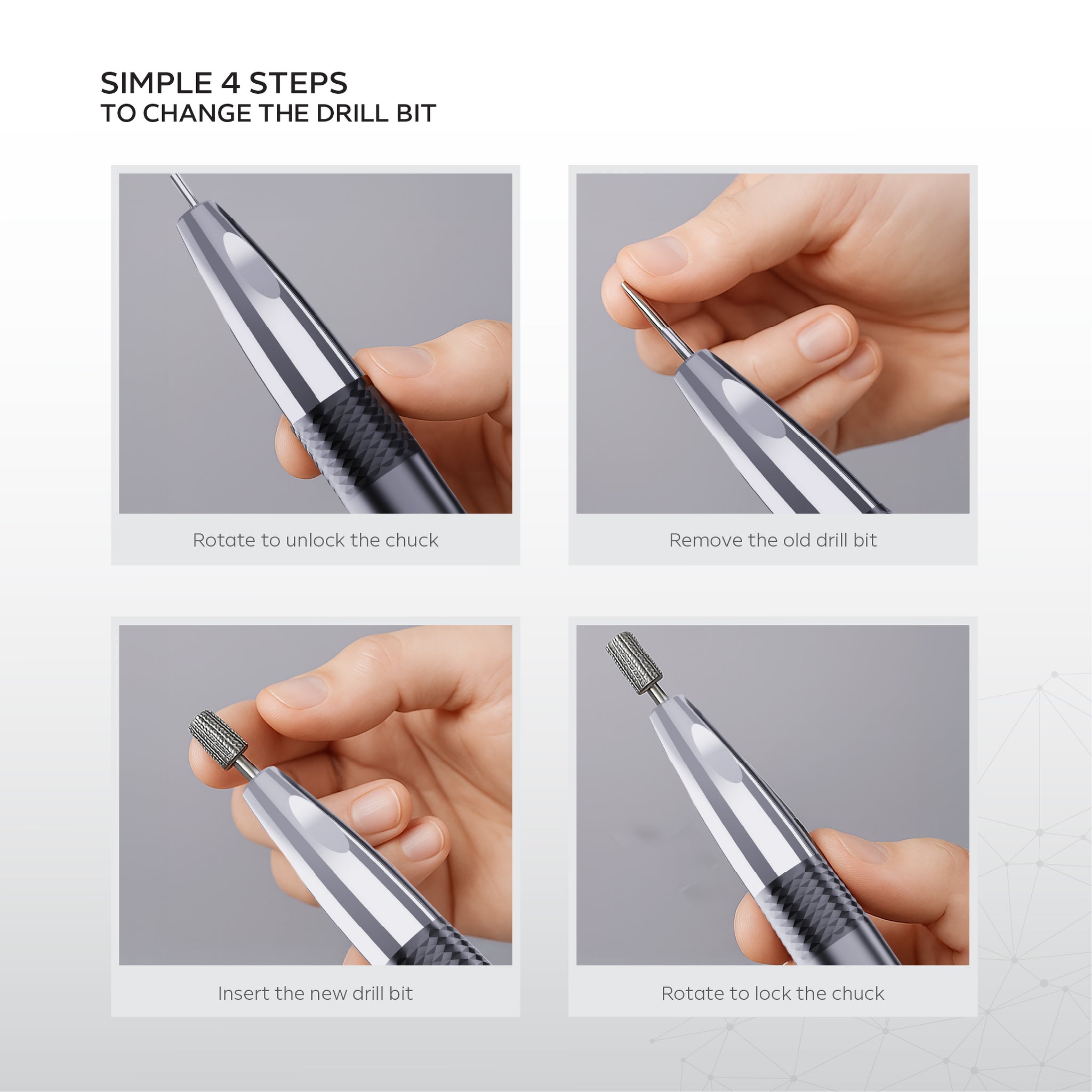 • Engineered for comfort and efficiency, this drill redefines professional nail care with its sleek design and advanced technology.