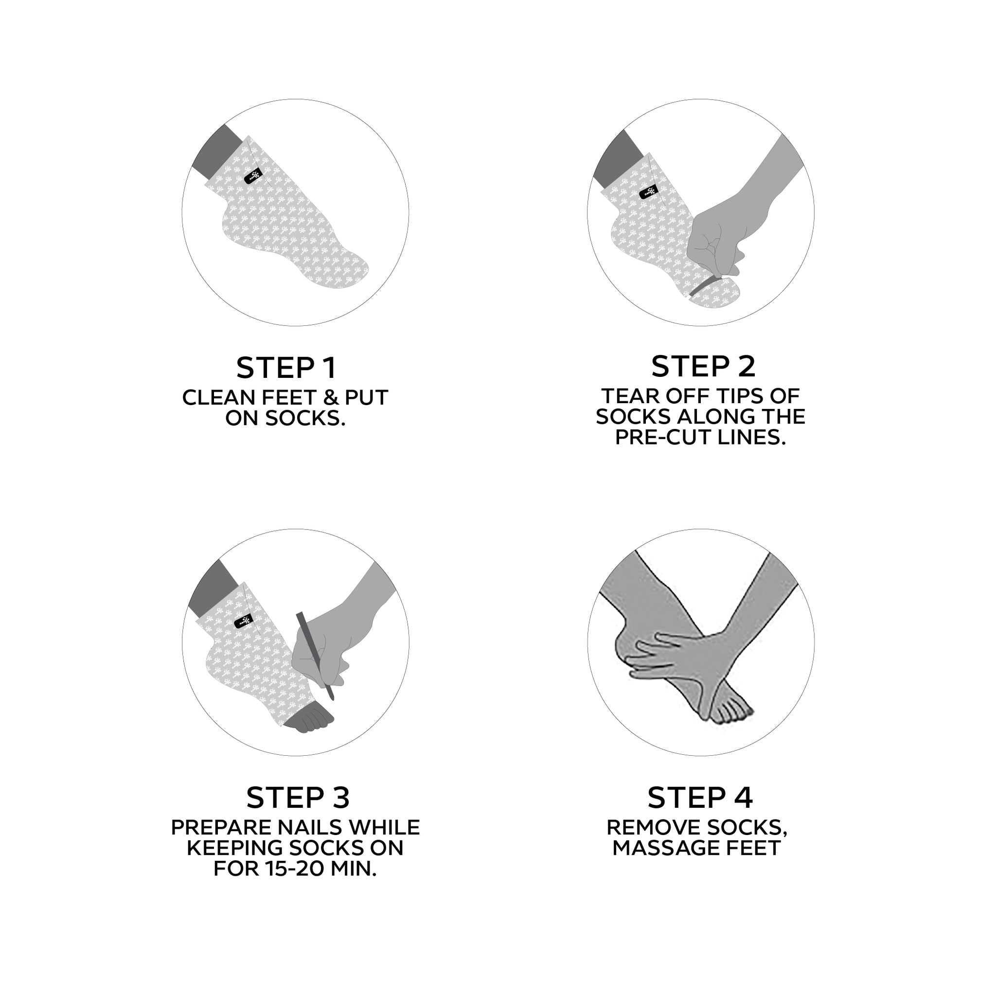 - Finishing Touch: Remove the socks and dispose of them. Massage any remaining lotion into your feet and lower legs—no rinsing required.