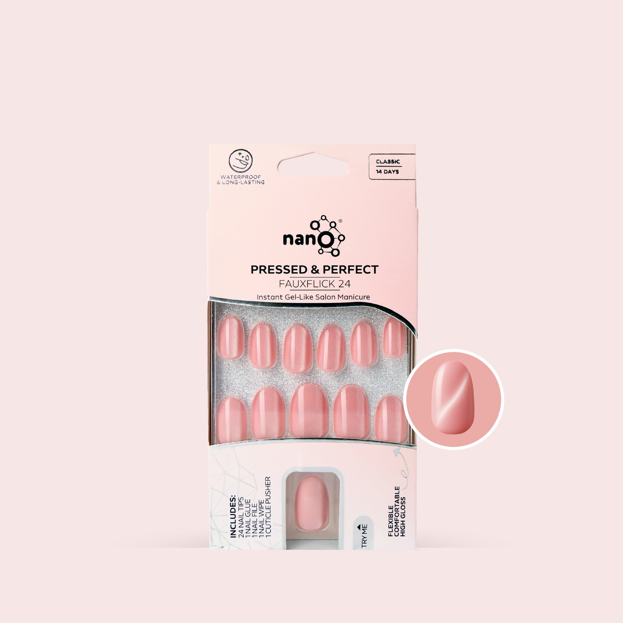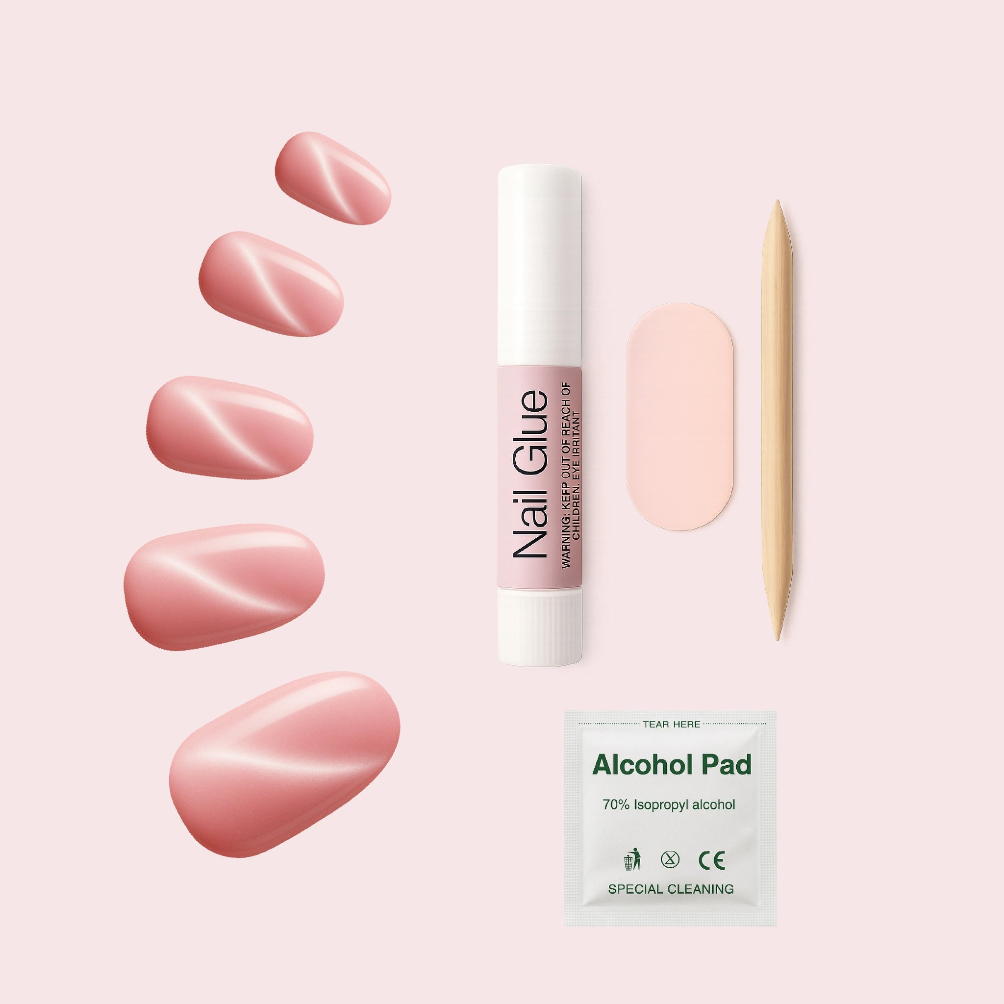 Nano® Peachy Gleam CatEye Pressed on Nails - 24pcs with Glue | Instant Gel-Like Shine, Peachy Pink Fake Nails Set
