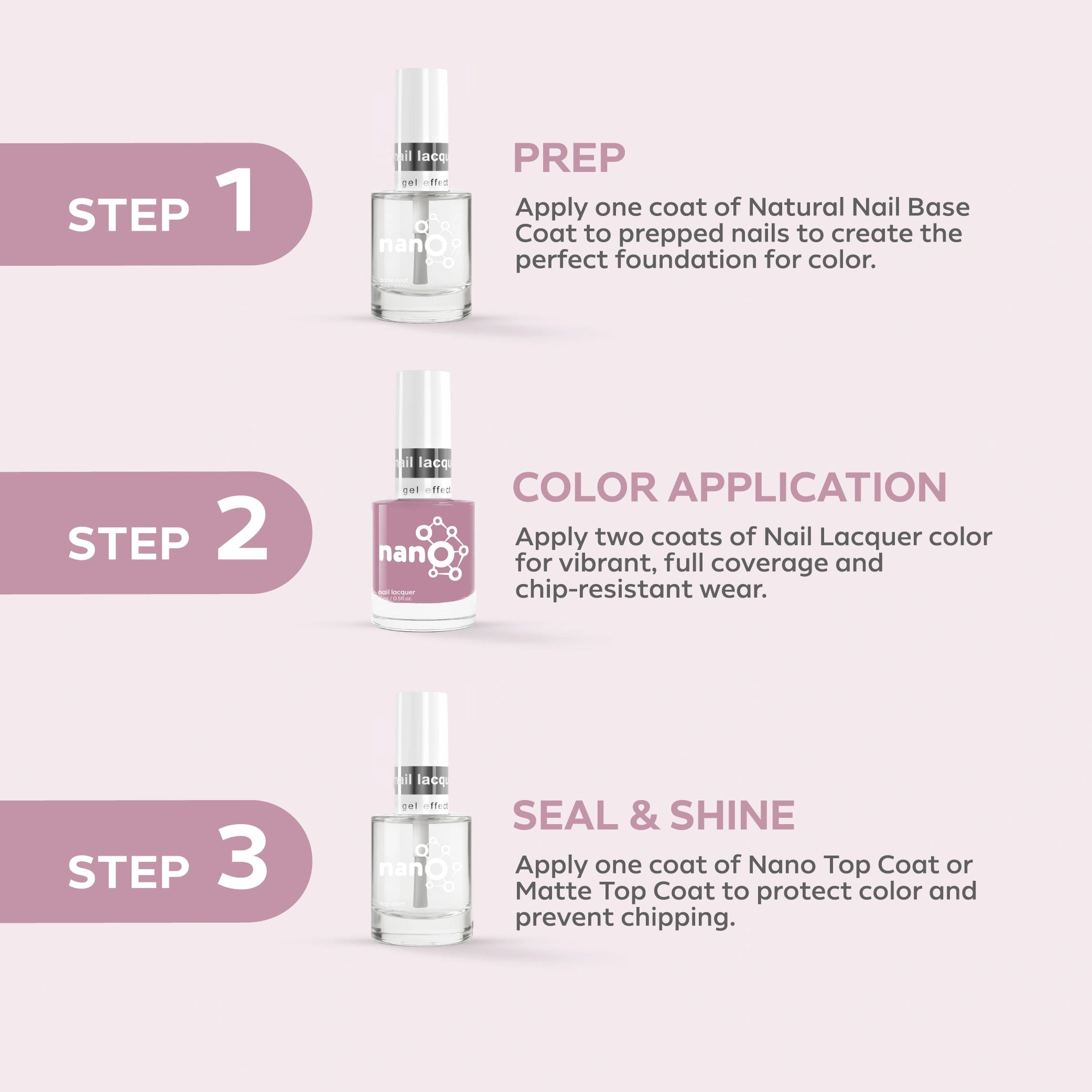 - Apply a layer of Nano® Normal Base Coat to protect your natural nails and ensure better adhesion.