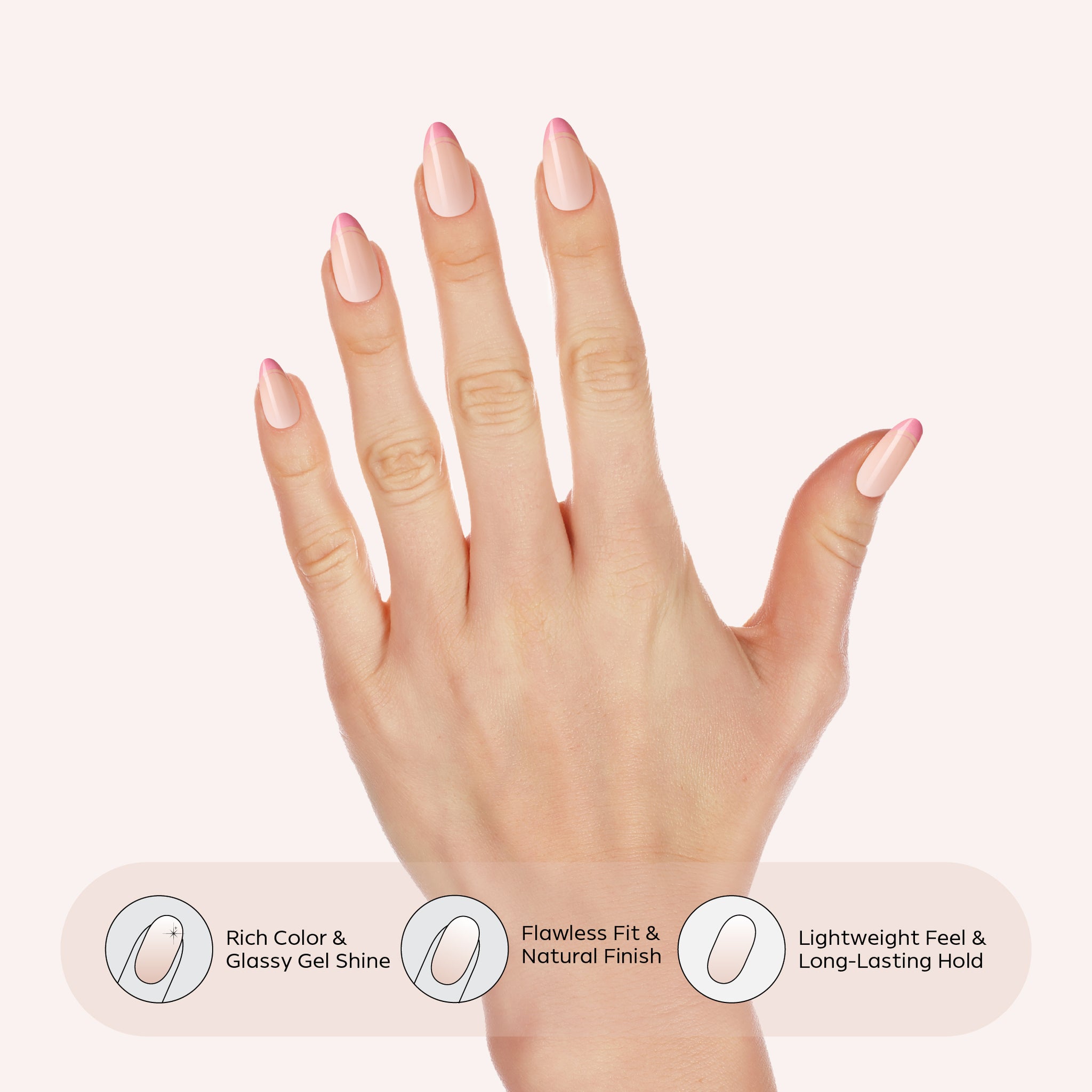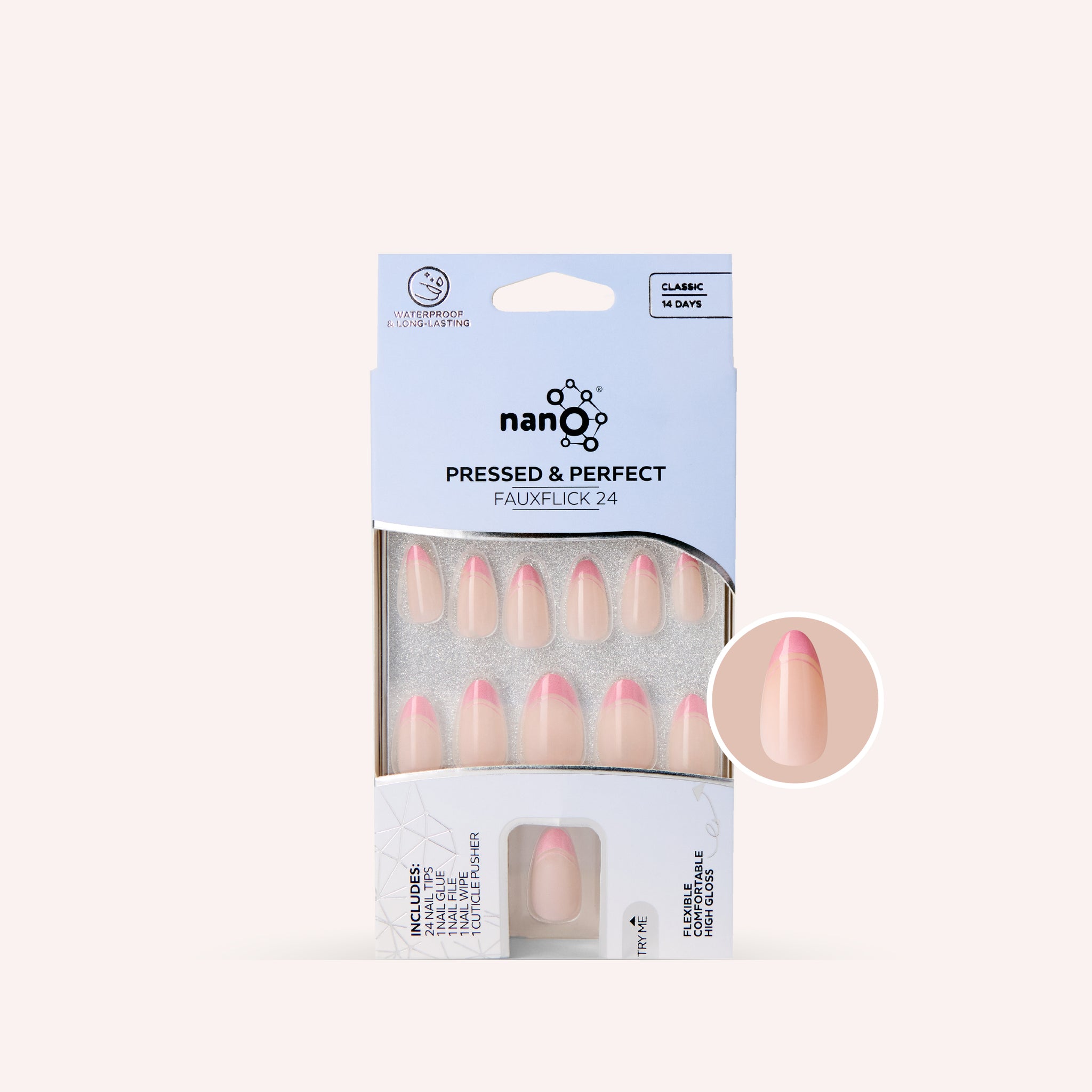 Nano® Pink Macaron Pressed on Nails - 24pcs with Glue | Instant Gel-Like Shine, Pink French Glossy Fake Nails Set