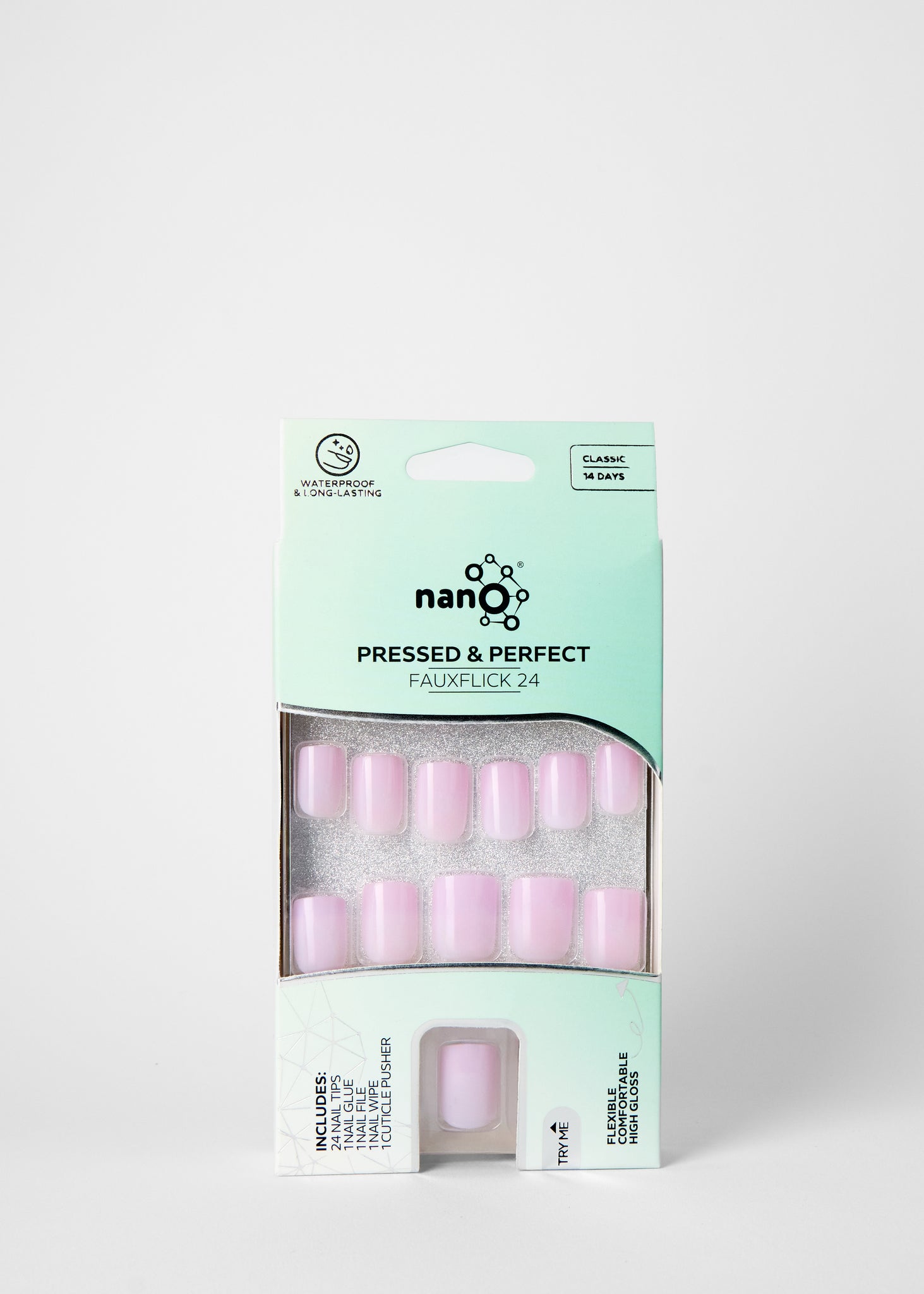 Nano® Pink Whisper Pressed on Nails - 24pcs with Glue | Instant Gel-Like Shine, Soft Baby Pink Glossy Fake Nails Set