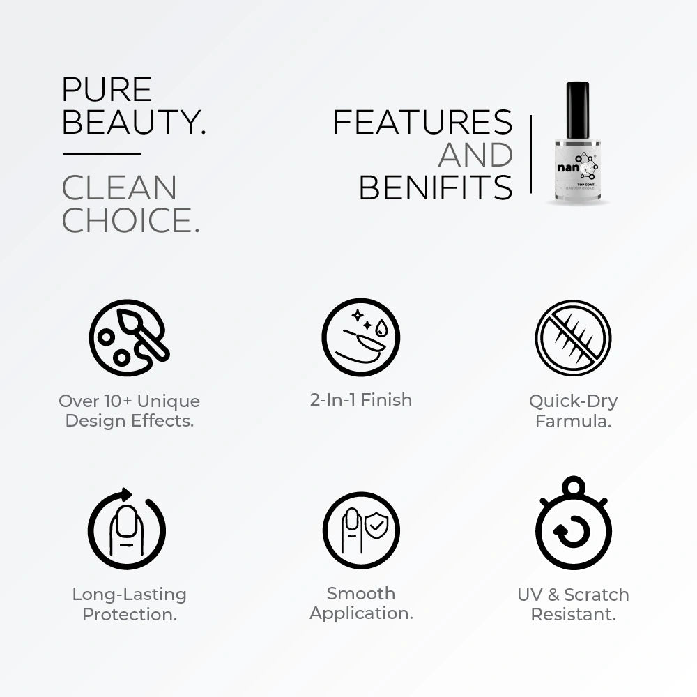 - Nano® Top coat requires no wipe off, so your nails are all set!
