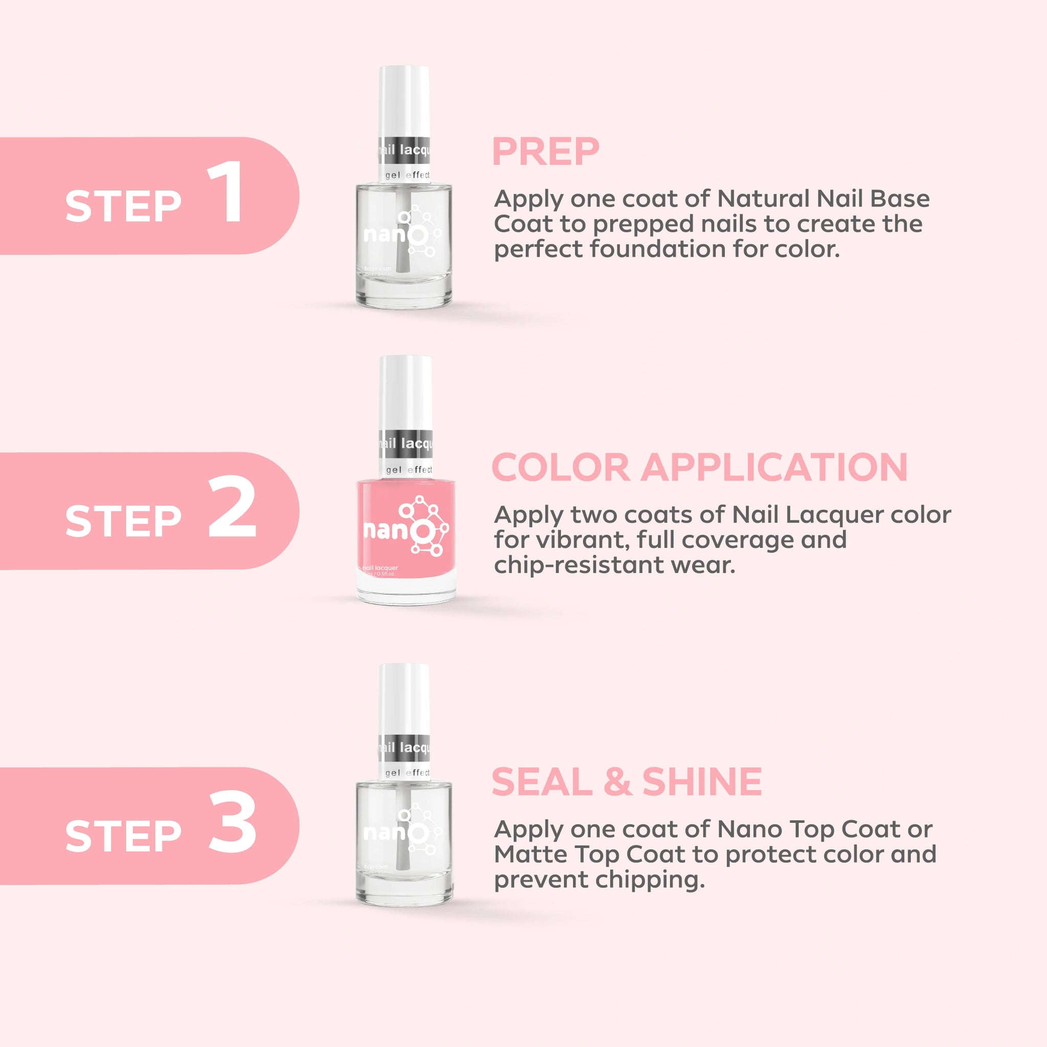 - Apply a layer of Nano® Normal Base Coat to protect your natural nails and ensure better adhesion.