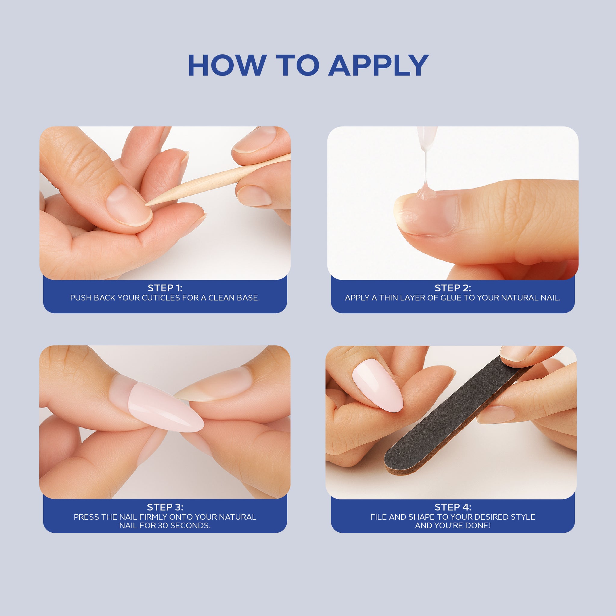 - Quick & Easy Application: Pre-shaped press-ons that apply instantly with the included nail glue — no polish or mess.
