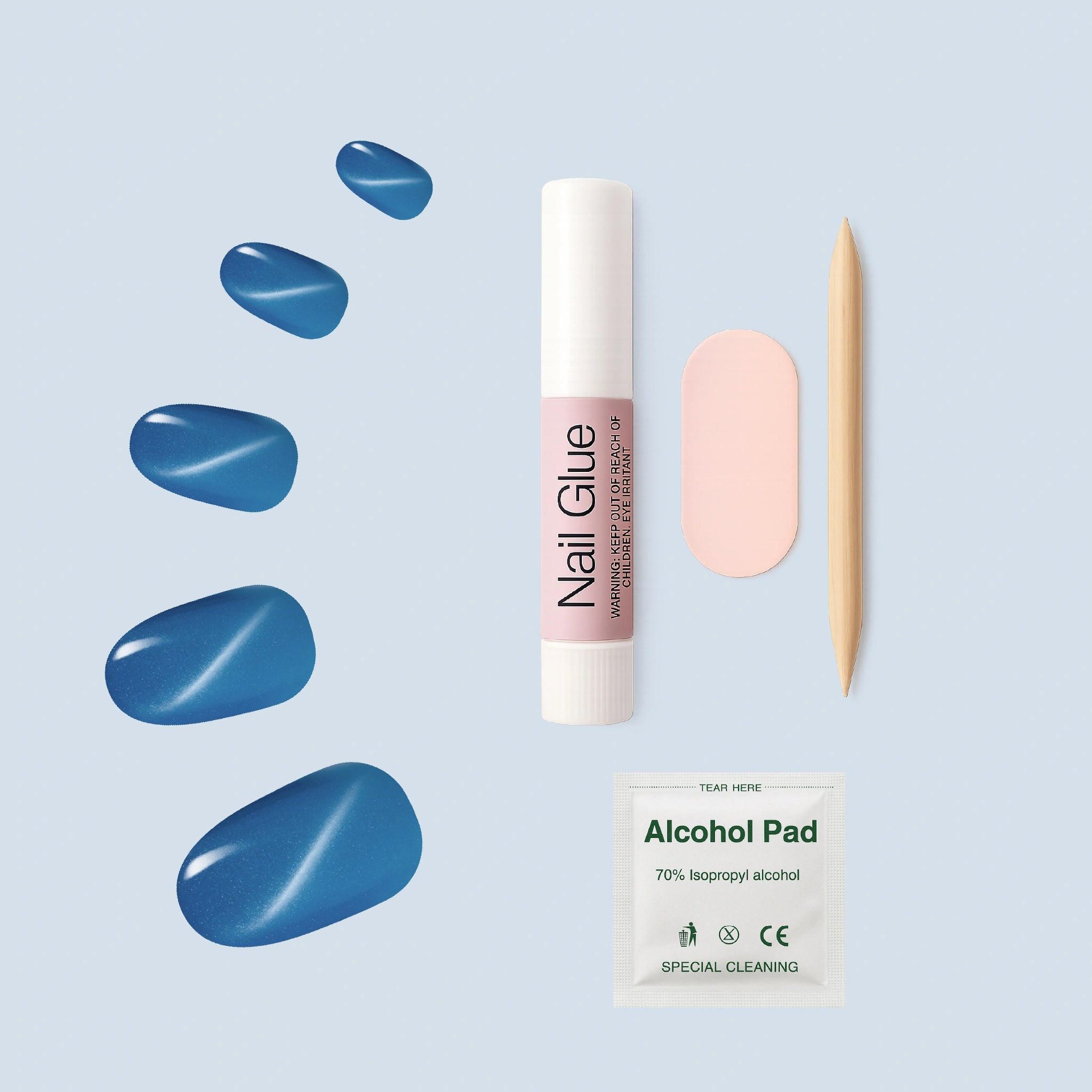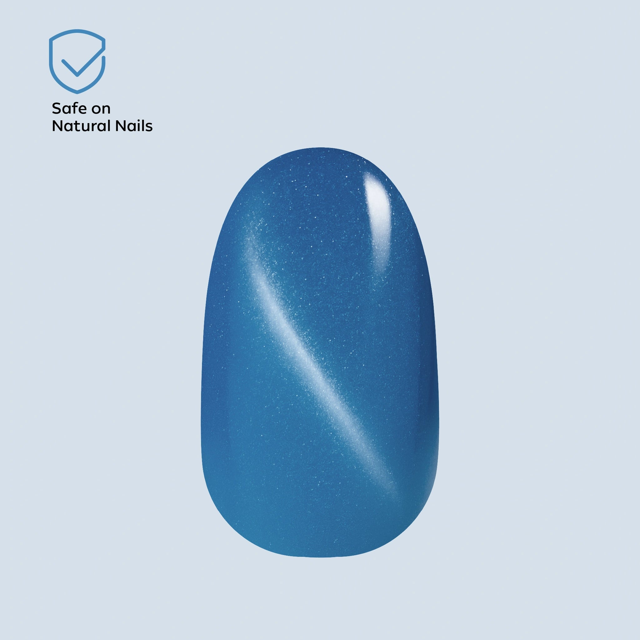 Nano® Sapphire Kitty Stare Pressed on Nails - 24pcs with Glue | Instant Gel-Like Shine, Electric Blue Fake Nails Set