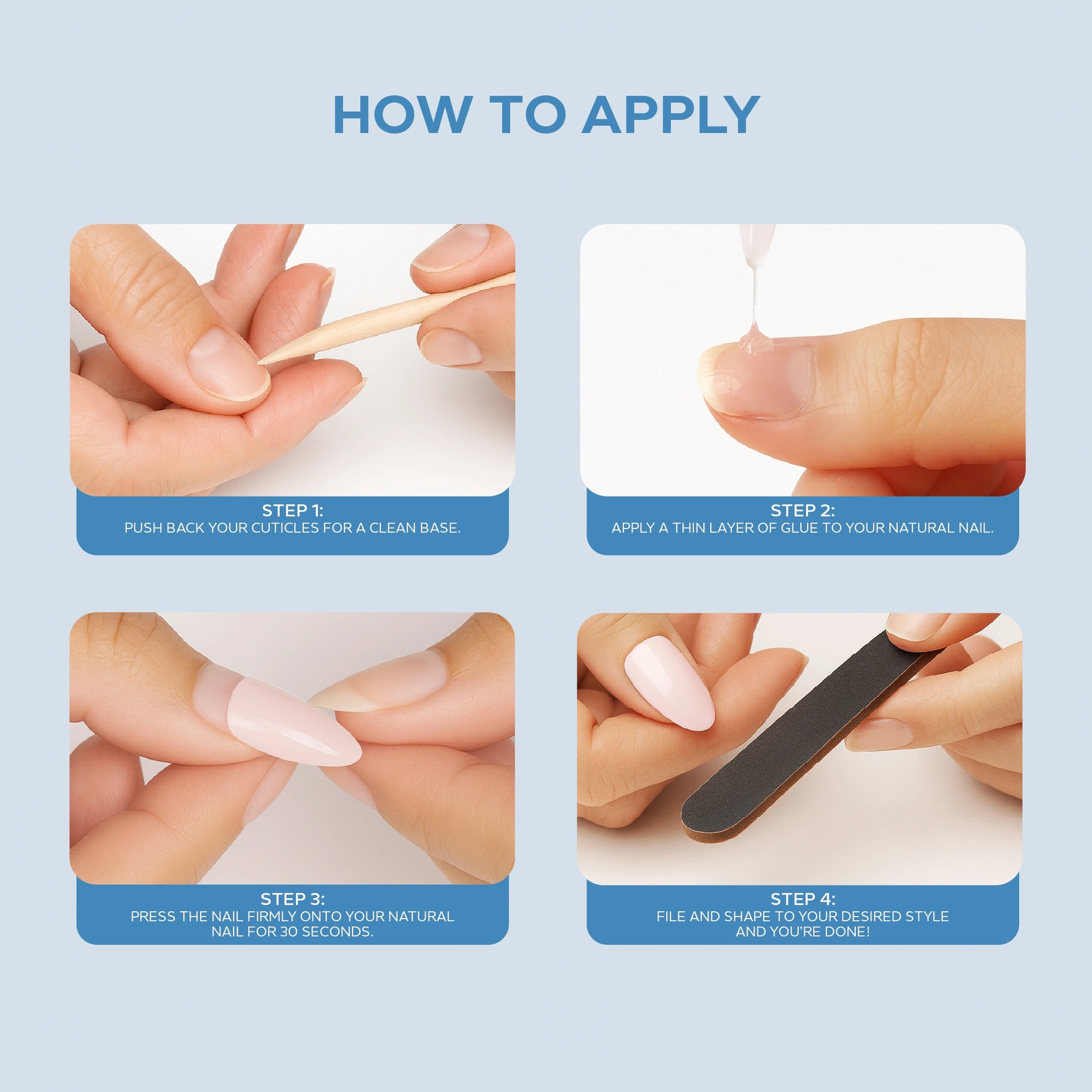 3. Instant Application: Pre-shaped and ready to wear, these press-ons apply effortlessly using the included nail glue.