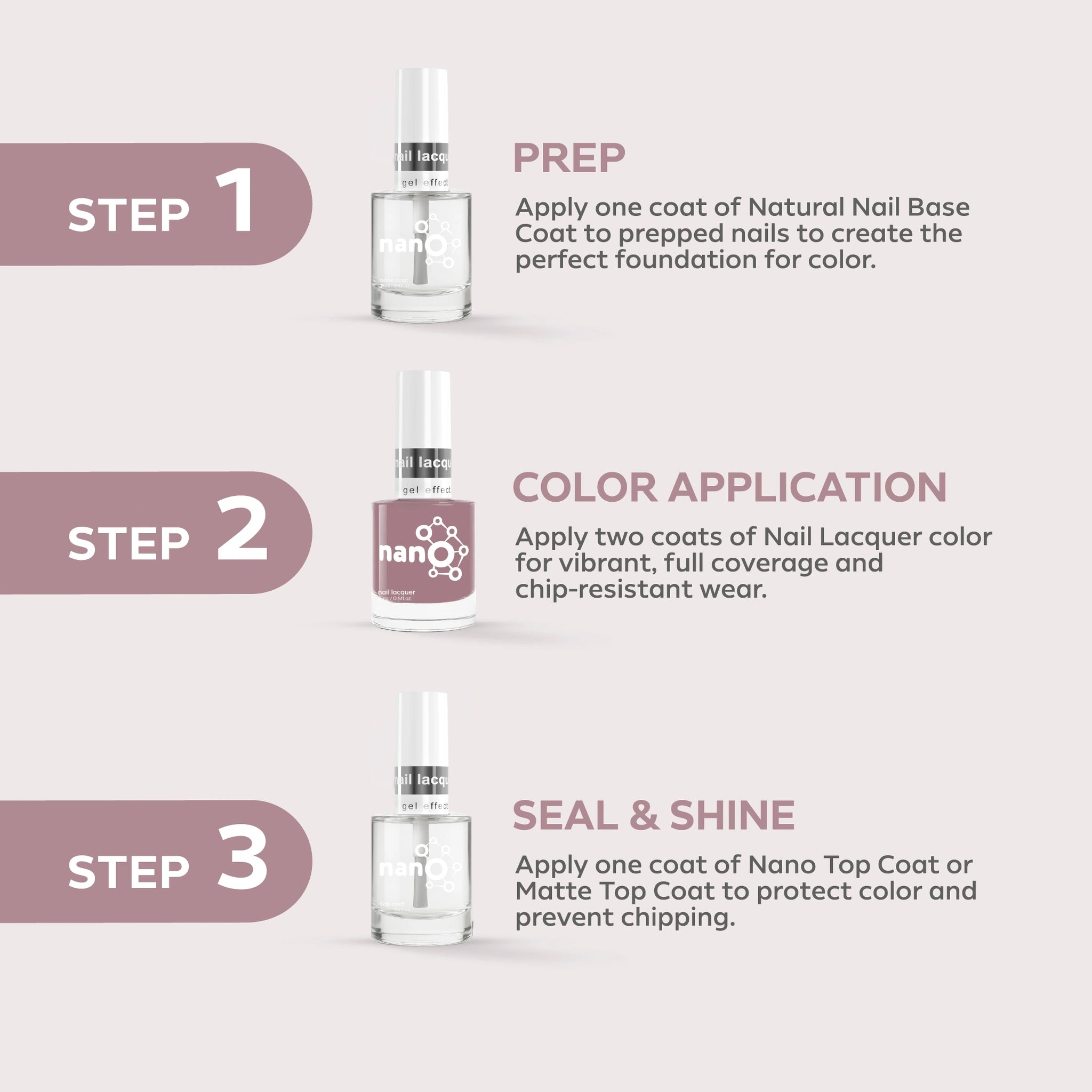 - Apply a layer of Nano® Normal Base Coat to protect your natural nails and ensure better adhesion.