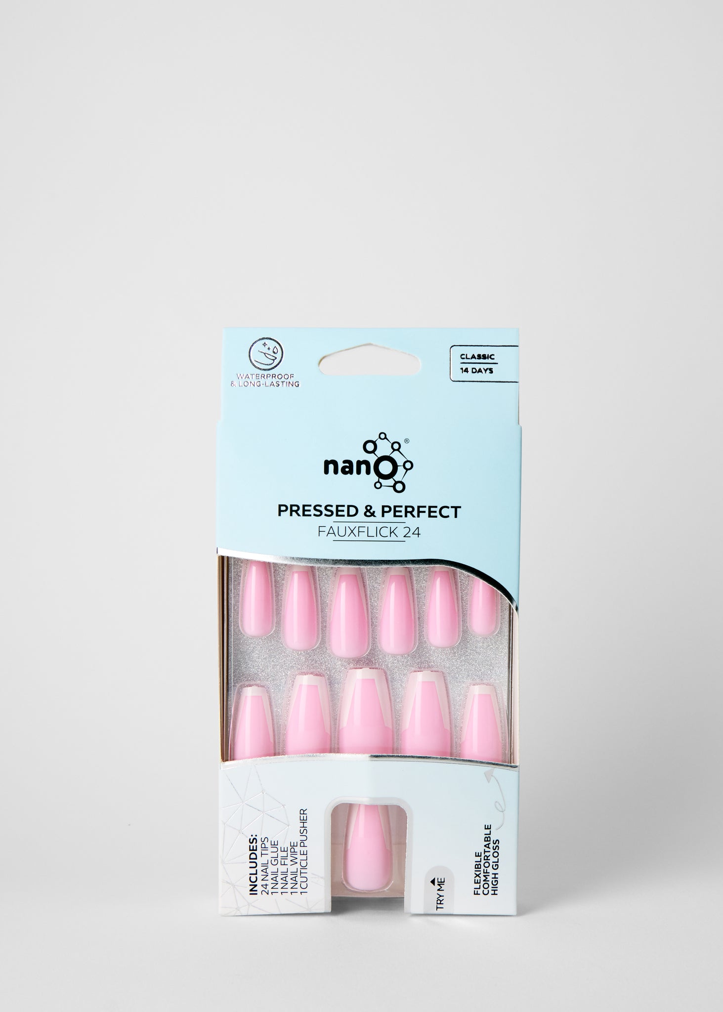 Nano® Soft Chic French Pressed on Nails - 24pcs with Glue | Instant Gel-Like Shine, Light Pink French Glossy Fake Nails Set