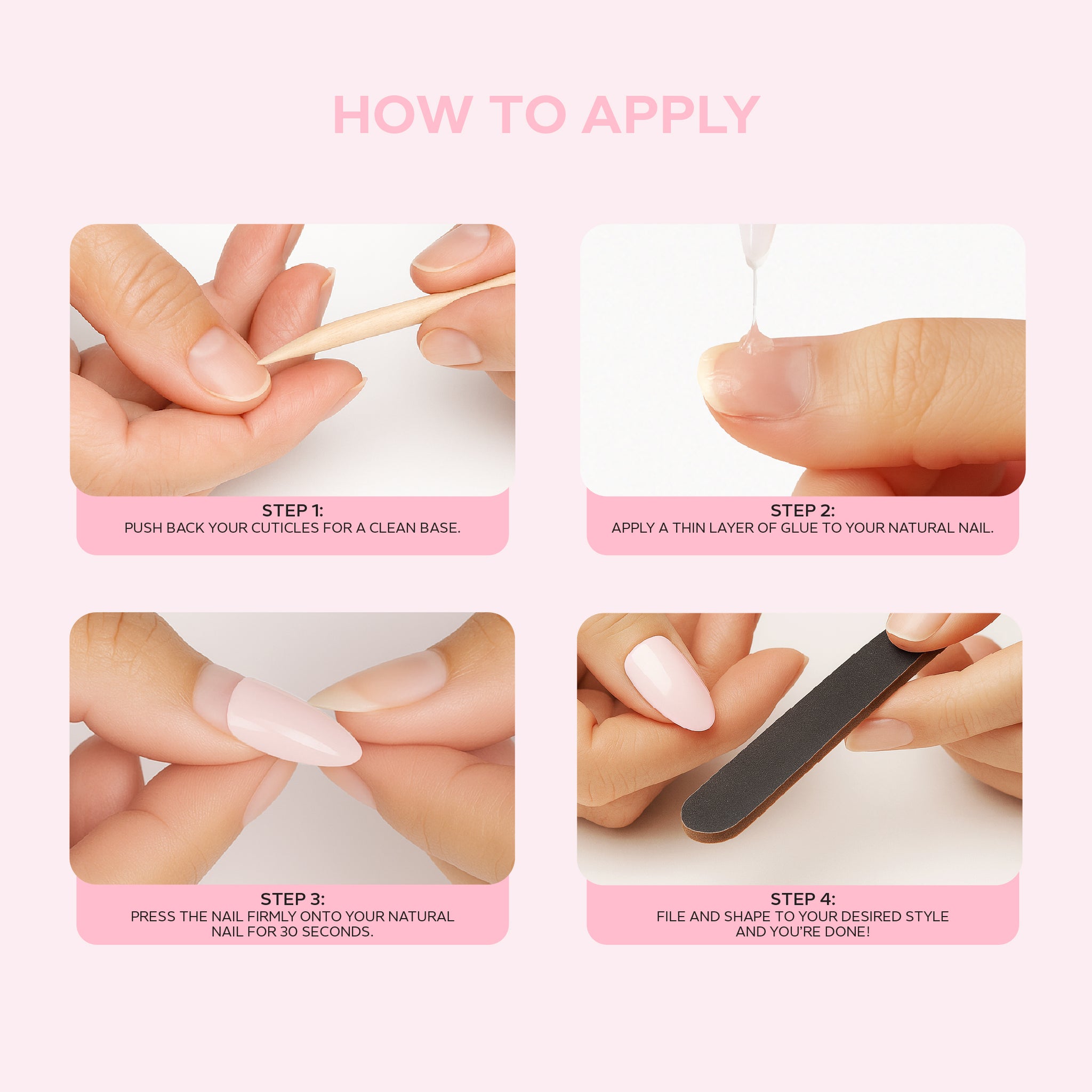 3. Instant Application: Pre-shaped press-ons that adhere easily using the included nail glue — no mess, no stress.