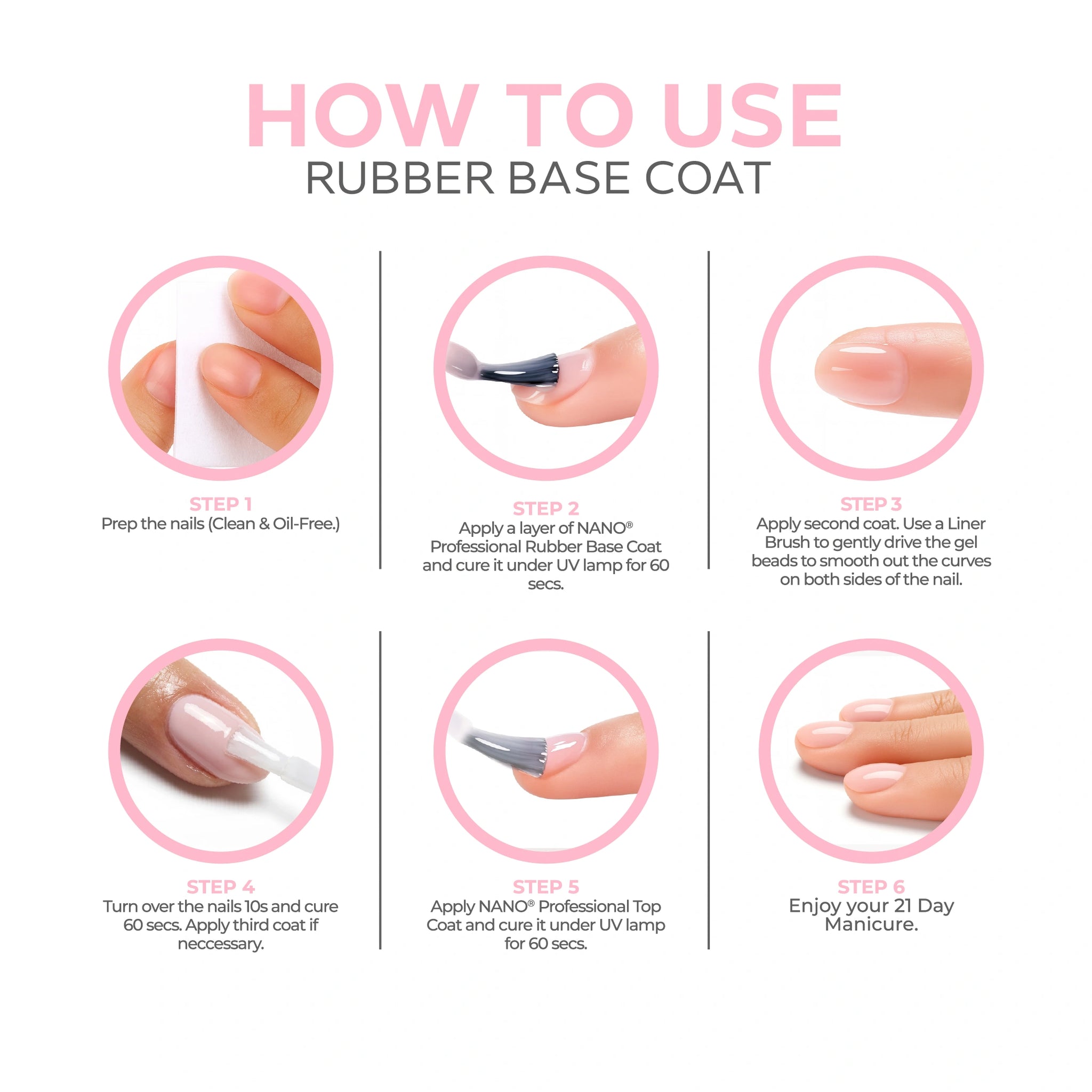 - Strengthen your nails with the elasticity and flexibility of the Rubber Base Coat.