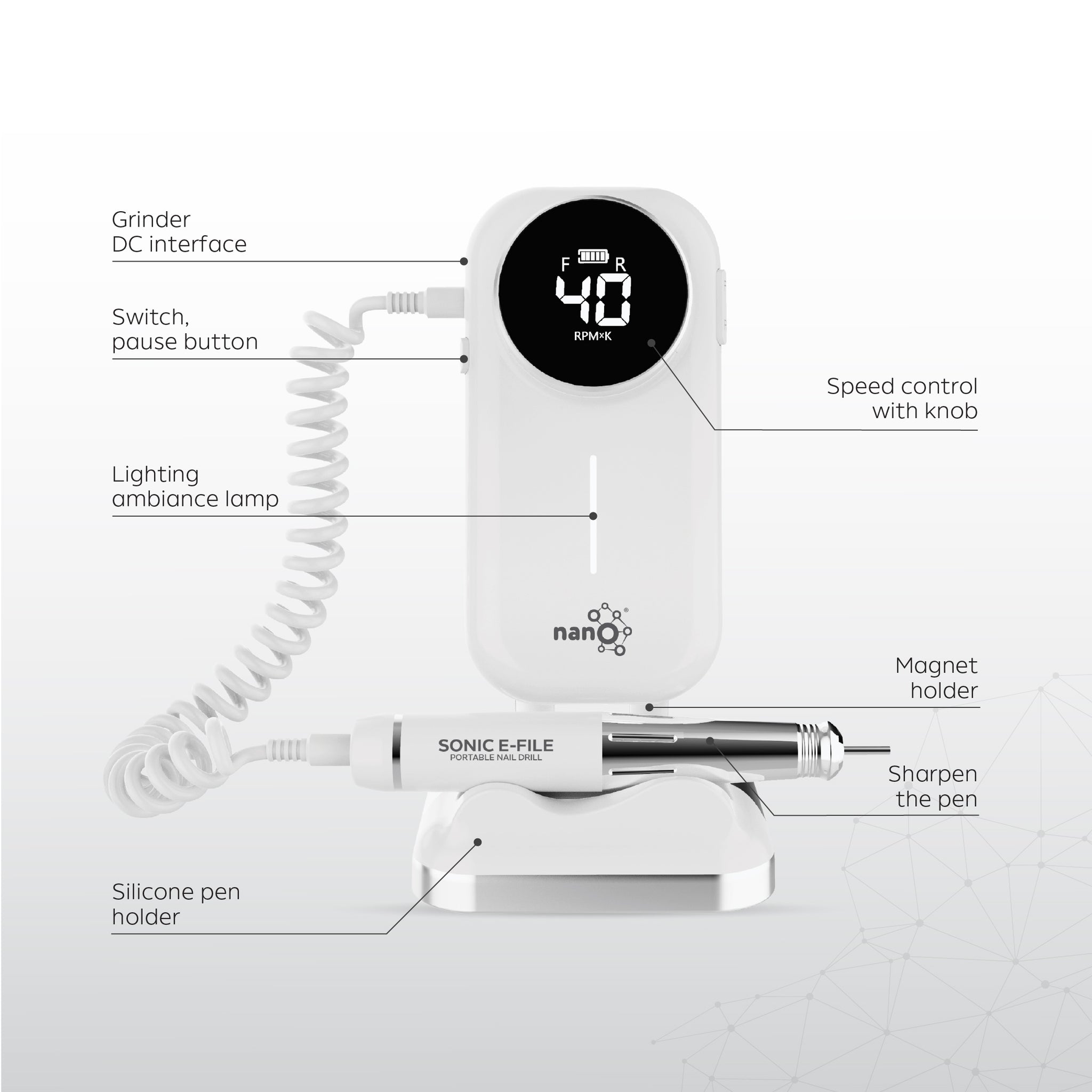 Nano® Sonic Pro E-File Nail Drill Machine - 40,000 RPM | Brushless Electric Nail Drill Machine