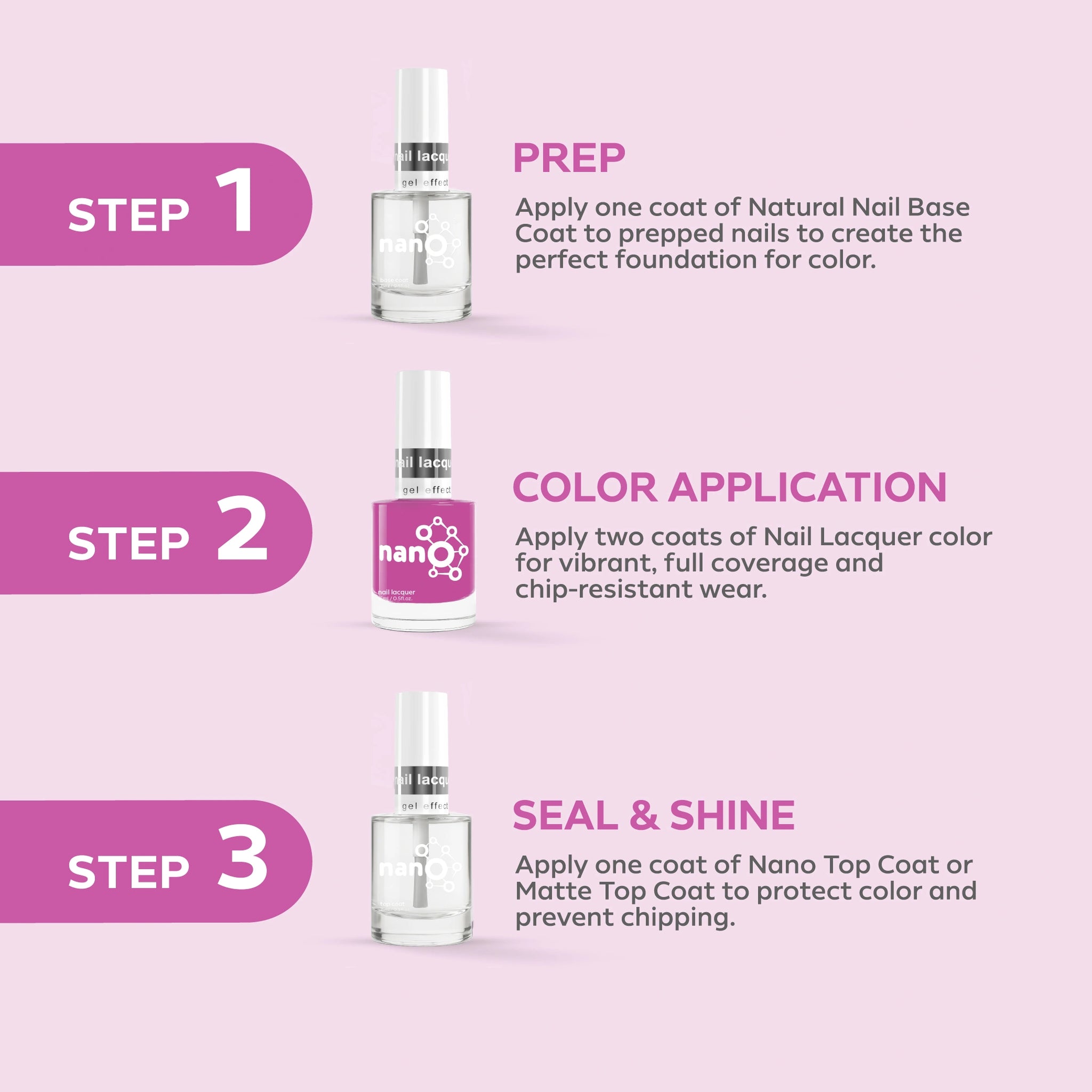 - Apply a layer of Nano® Normal Base Coat to protect your natural nails and ensure better adhesion.